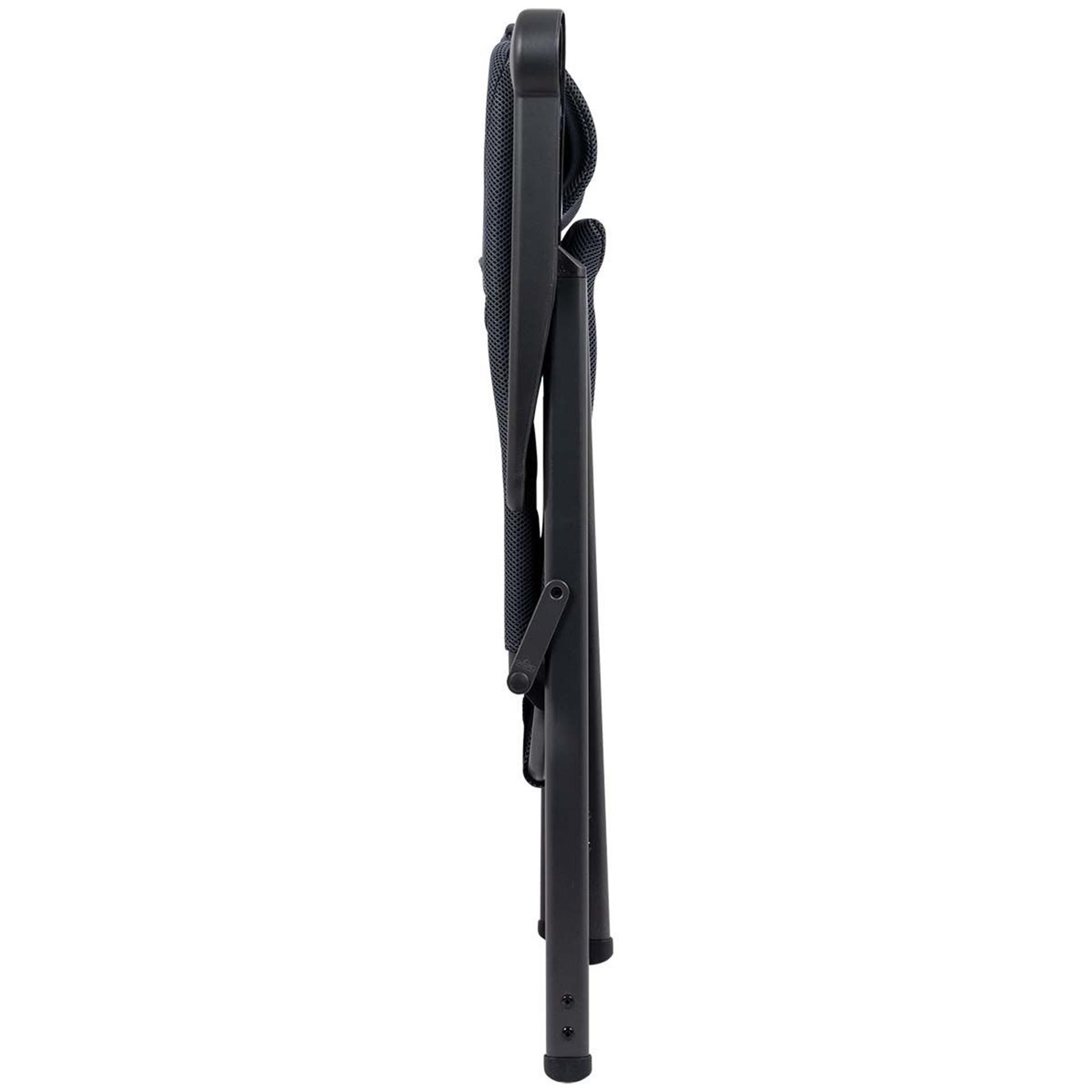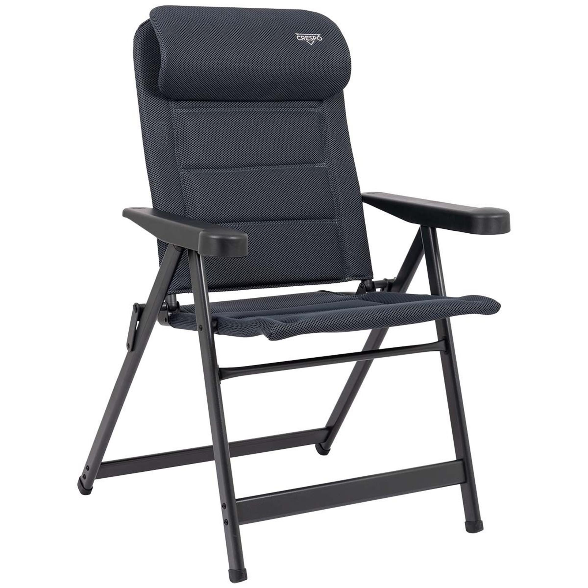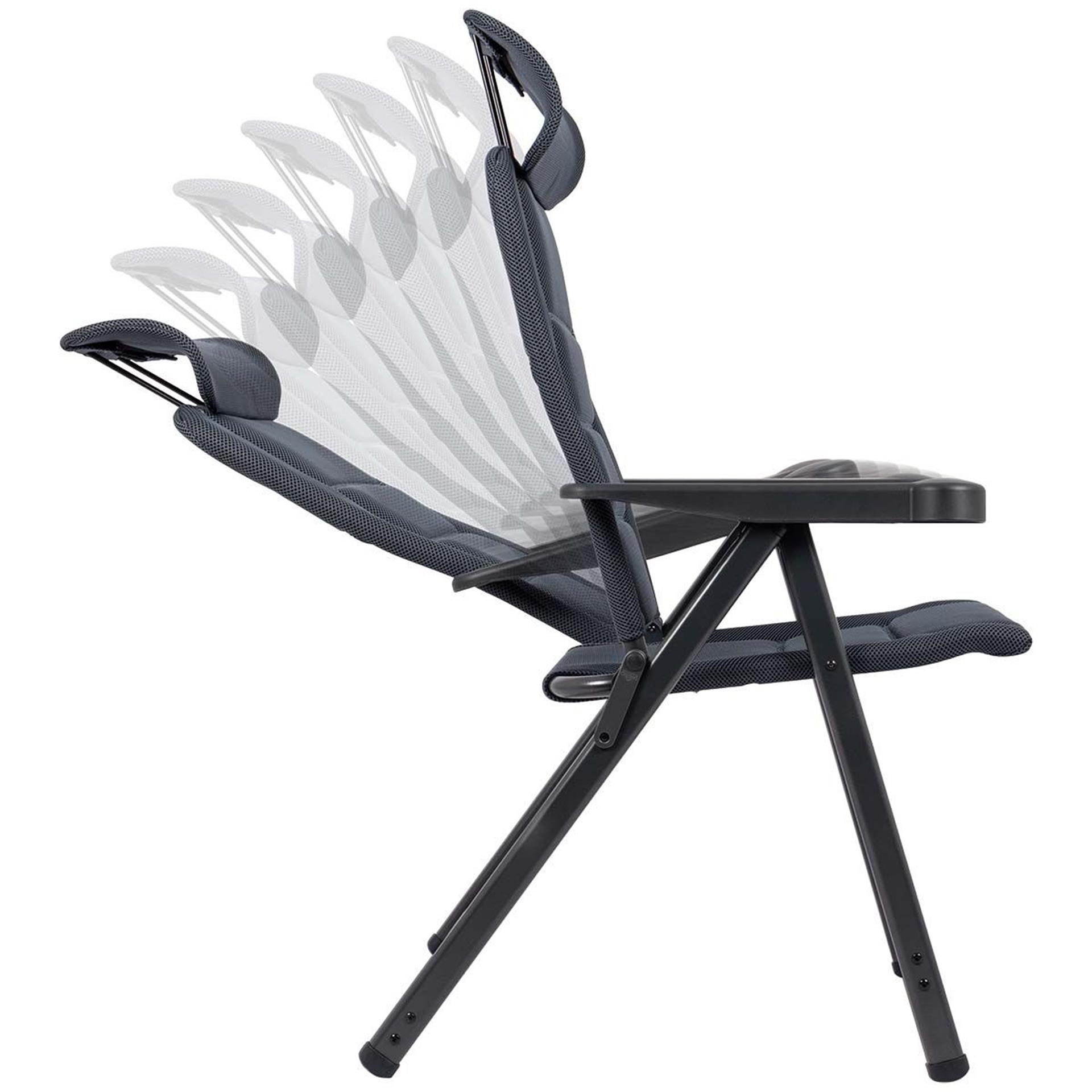 Een zeer luxe standenstoel met een verstelbare hoofdsteun. Deze stoel biedt maximaal comfort door de in 7 standen verstelbare rugleuning en de gepolsterde 3D stof. De comfortabele vulling van deze stof is extra luchtdoorlatend en houdt door de open celstructuur geen vocht vast. Hierdoor is de stoel veel sneller droog dan stoelen met een traditionele schuimvulling. Daarnaast zijn zowel de rugleuning, de zitting en de armleggers ergonomisch gevormd. De stoel is voorzien van een geanodiseerd H-frame voor extra stabiliteit en stevigheid. Ingeklapt is deze stoel zeer compact en daardoor gemakkelijk mee te nemen. Maximale belasting: 140 kilogram.