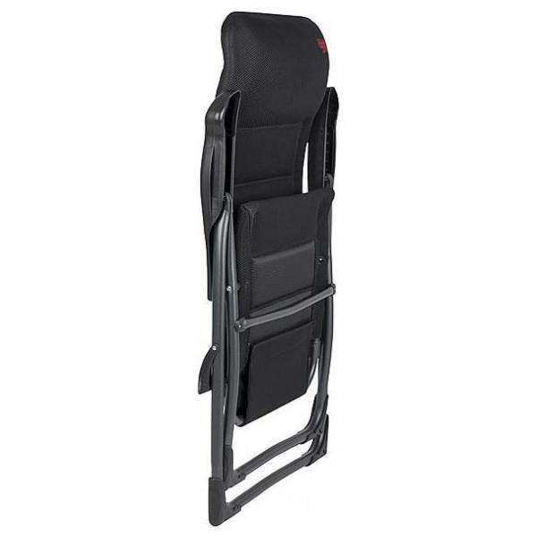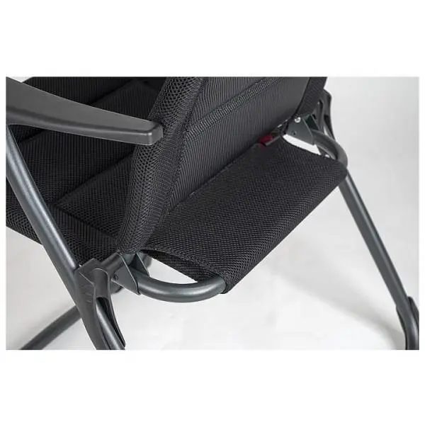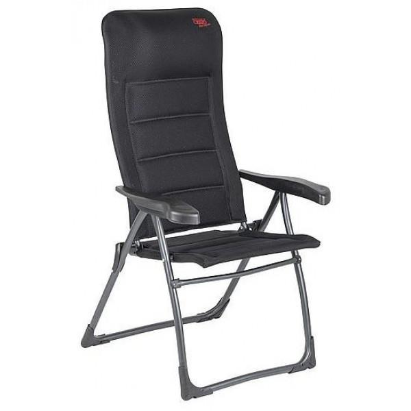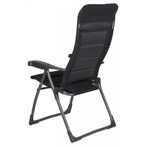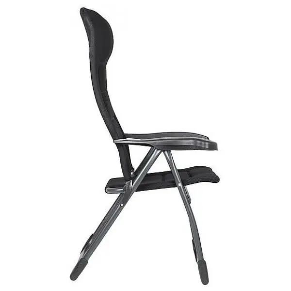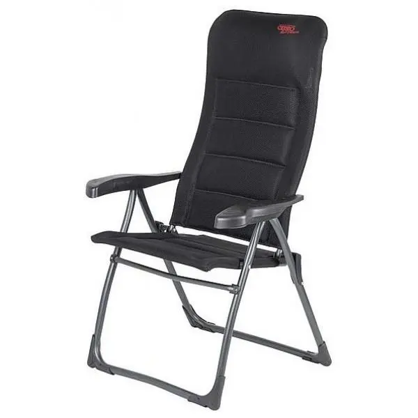 Een lichtgewicht en extra stevige standenstoel. Deze stoel biedt maximaal comfort door de in 7 standen verstelbare rugleuning en de gevoerde stof. De comfortabele vulling van deze stof is extra luchtdoorlatend en houdt door de open celstructuur geen vocht vast. Hierdoor kan de stoel tegen een kleine regenbui en droogt het veel sneller dan stoelen met een traditionele schuimvulling. Daarnaast zijn zowel de rugleuning, de zitting en de armleggers ergonomisch gevormd. De stoel is voorzien van een U-frame voor extra stabiliteit. Ingeklapt is deze stoel zeer compact en daardoor gemakkelijk mee te nemen.