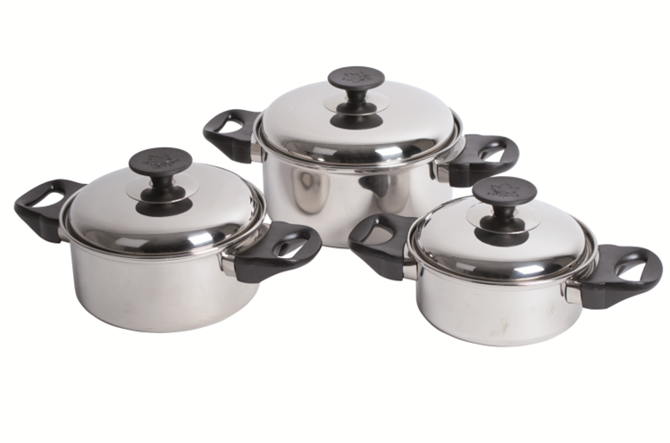 Een 3-delige lage pannenset. Deze kookpannen zijn voorzien van stevige en hittebestendige handgrepen en een hittebestendige knop op het deksel. Te gebruiken op de warmtebronnen gas, keramisch en elektrisch.