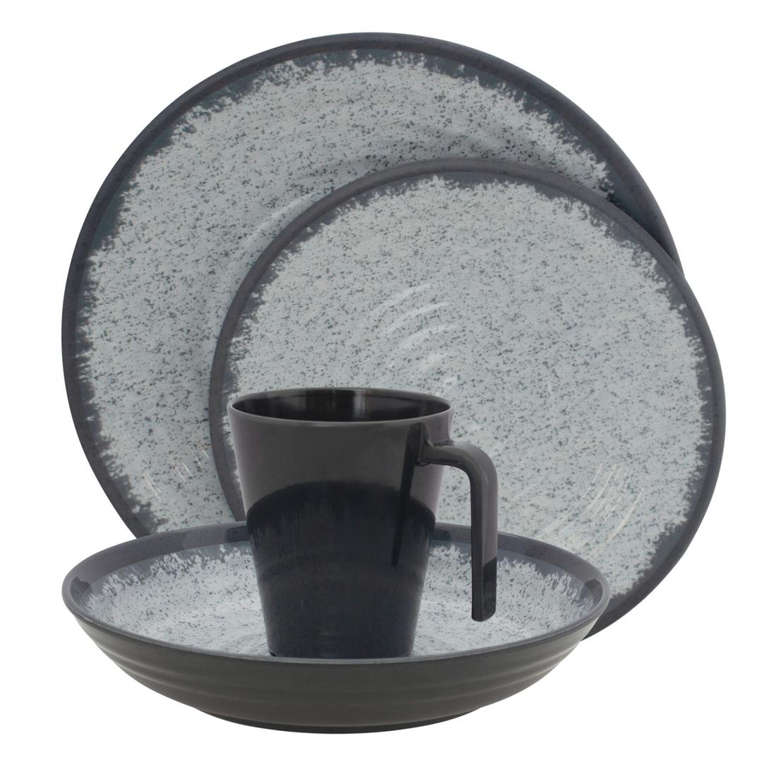 16 Delig tafelservies met een origineel en trendy design. Servies is gemaakt van een stevig Melamine geschikt voor de afwasmachine. De drinkbekers kunnen door de open greep gestapeld worden zodat deze weinig ruimte innemen.