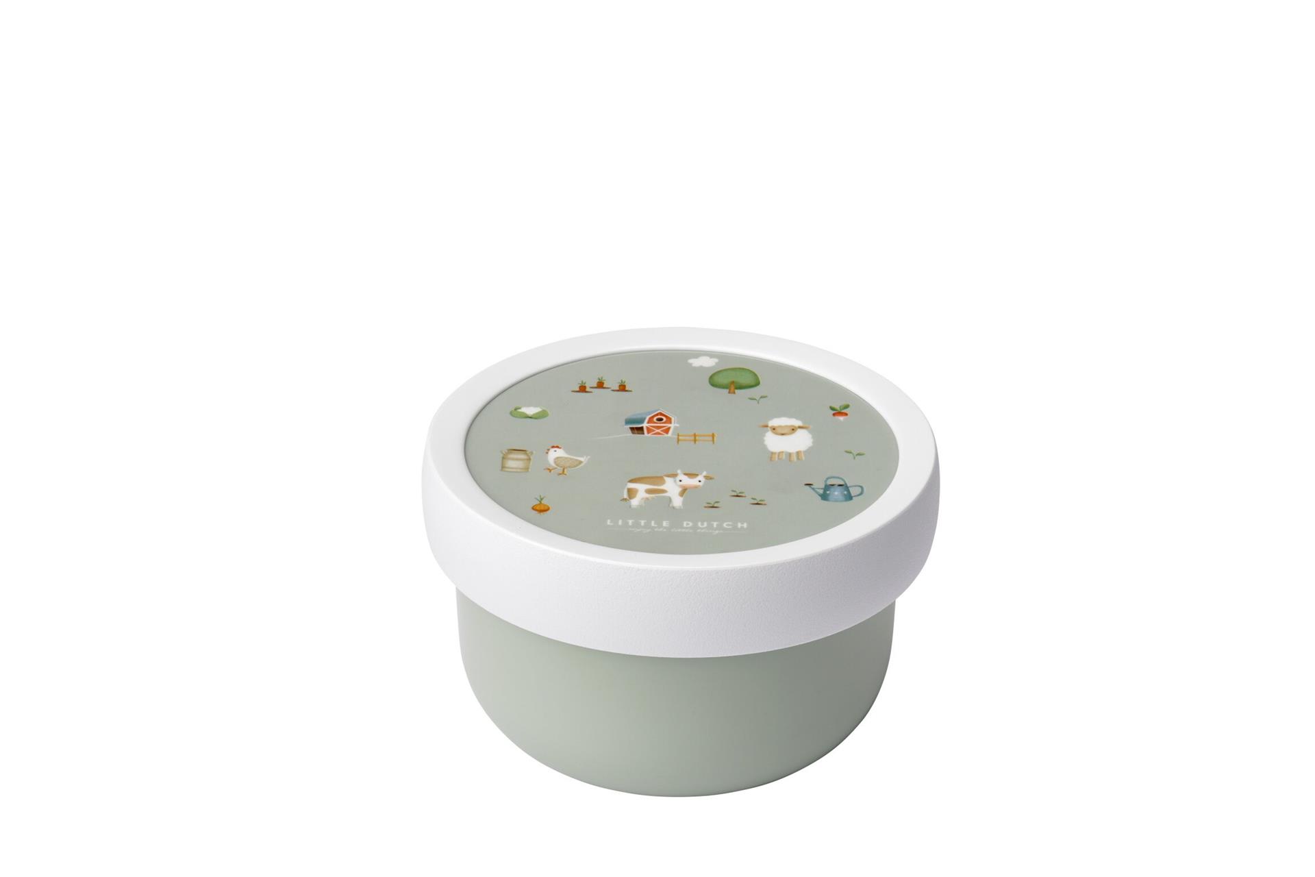 Met de Mepal Fruitbox Campus Little Farm wordt fruit eten een feestje. De fruitbox wordt standaard geleverd met een vork, wat handig is zodat je kindje altijd een vork bij de hand heeft om het fruit te eten. Bovendien zijn de fruitboxen verkrijgbaar in verschillende printjes, die perfect te combineren zijn met andere producten van Little Dutch in hetzelfde thema. Na gebruik kan de fruitbox eenvoudig gereinigd worden in de vaatwasser.