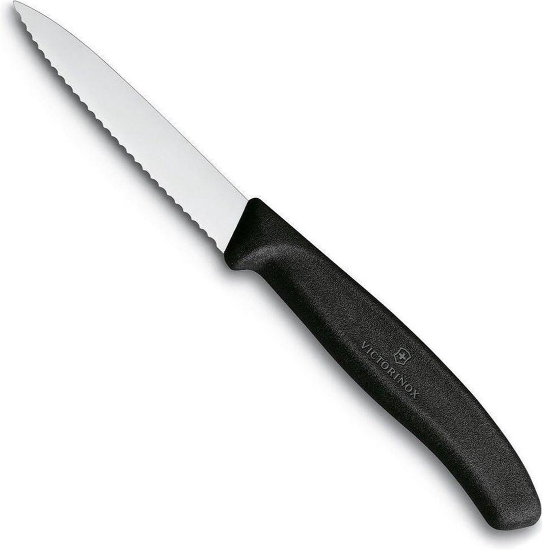 Het vlijmscherpe Victorinox Swissclassic schilmes 8cm is perfect voor het snijden van groente en fruit. Dankzij de vlijmscherpe kartel snijdt je gemakkelijk door bijvoorbeeld een kiwi of een wortel. Het lemmet is gemaakt van roestvrij staal met een handvat van zwart kunststof.
