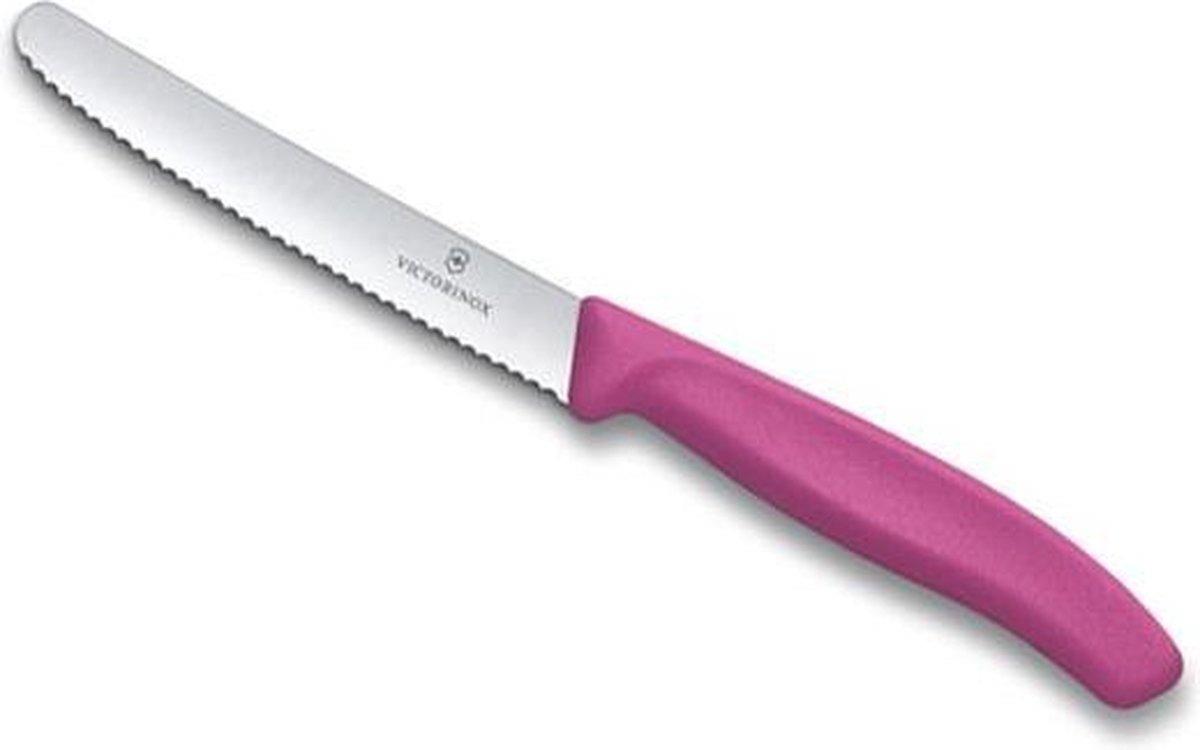 Tomaten-/kaasmes "Swiss Classic" van Victorinox, fabrikant van het beroemde "Original Swiss Army Knife". Kies voor kleur en Zwitserse kwaliteit in de keuken! Lemmet 11 cm van roestvrij staal, met gekartelde, vlijmscherpe snede.