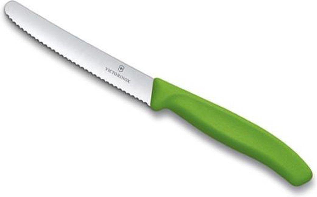 Tomaten-/kaasmes "Swiss Classic" van Victorinox, fabrikant van het beroemde "Original Swiss Army Knife". Kies voor kleur en Zwitserse kwaliteit in de keuken! Lemmet 11 cm van roestvrij staal, met gekartelde, vlijmscherpe snede.