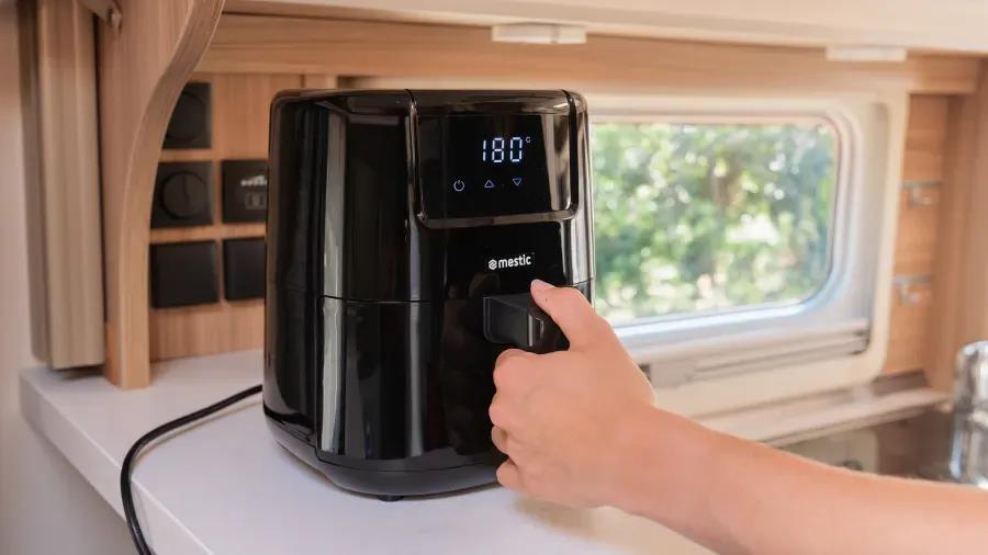 Vind jij bakluchtjes in je kampeervoertuig ook niet fijn? Met de Mestic heteluchtfriteuse MA-300 heb jij hier nauwelijks last van. Dankzij zijn compacte formaat (21,1 x 25,6 x 25,1 cm) en lichte gewicht (2,3 kg) neem je hem gemakkelijk met je mee op vakantie. Met een vermogen van 900 W is de zwarte heteluchtfriteuse op iedere camping te gebruiken. De camping friteuse is tevens voorzien van oververhittingsbeveiliging, waardoor hij extra veilig is in gebruik. Dankzij de uitneembare grillpan maak je het apparaat eenvoudig schoon. Bedien de heteluchtfriteuse eenvoudig met het digitale display.