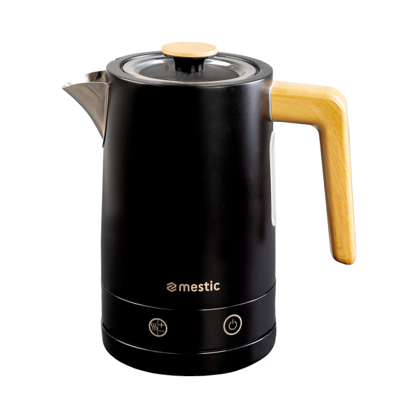 De Mestic waterkoker MWC-250 heeft een luxe uitstraling dankzij de zwarte behuizing en het houtlook handvat. Deze camping waterkoker heeft meerdere praktische functies. Hij beschikt over een warmhoudfunctie die het water tot wel vier uur lang warm kan houden. Laat het water koken tot 100°C en selecteer vervolgens de temperatuur waarop het water warm gehouden moet worden. Er zijn vier temperatuurinstelling: 40℃, 60℃, 80℃ of 90℃. De temperatuur stel je eenvoudig in dankzij de digitale aanraakbediening.