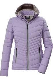 Gewatteerde damesjas met afneembare capuchon. Winddicht, waterafstotend, 8000 mm waterkolom. PFAS-vrije impregnering, deels gemaakt van gerecycled materiaal. Ritssluiting aan de voorzijde met kinbescherming, verstelbare zoom. Praktische zakken met ritssluiting.