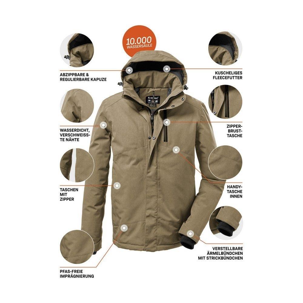 Het tijdloze design maakt deze Killtec functionele jas perfect voor zowel outdooractiviteiten als dagelijks gebruik! Met een waterkolom van 10.000 mm en getapete naden is de jas water- en winddicht. De jas is ademend en biedt handige opbergruimte met een telefoonzak, twee steekzakken en een borstzak – allemaal voorzien van ritsen. De capuchon is verstelbaar en afneembaar, en de verstelbare mouwuiteinden met zachte boorden houden de wind buiten. Killtec kiest bewust voor duurzame productie. Deze jas is daarom fluorvrij geïmpregneerd.
