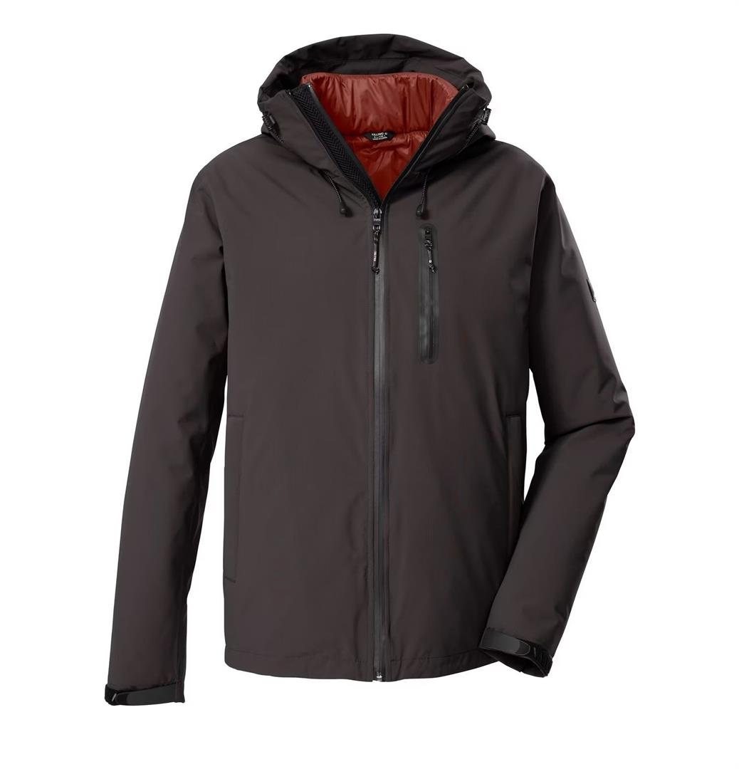 Deze veelzijdige 3-in-1 functionele jas voor heren met verstelbare capuchon biedt geavanceerde functies. Met een waterkolom van 10.000 mm en gelaste naden biedt hij bescherming tegen regen en wind. Het is belangrijk om de jas zo nu en dan opnieuw waterdicht te maken. Het materiaal is ook ademend (3.000 g/m²/24 h). De handzakken en binnenzak bieden voldoende ruimte voor een mobiele telefoon en andere kleine spullen. De klittenbandsluitingen aan de manchetten maken individuele aanpassing mogelijk. De rits heeft een praktische kinbescherming. Een bijzonderheid is de extra gewatteerde jas, die eenvoudig aan en uit te ritsen is, zodat u de jas kunt aanpassen aan de actuele weersomstandigheden. Deze jas heeft een PFAS-vrije waterdichte finish en is gedeeltelijk gemaakt van gerecycled materiaal.