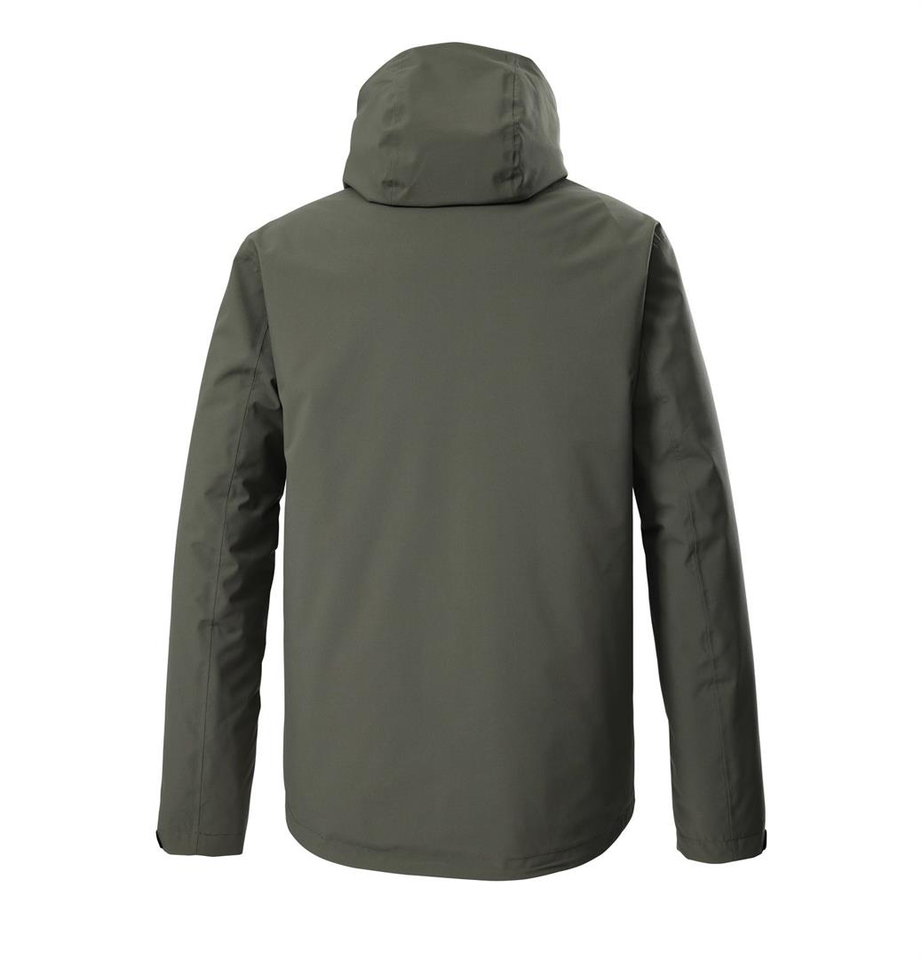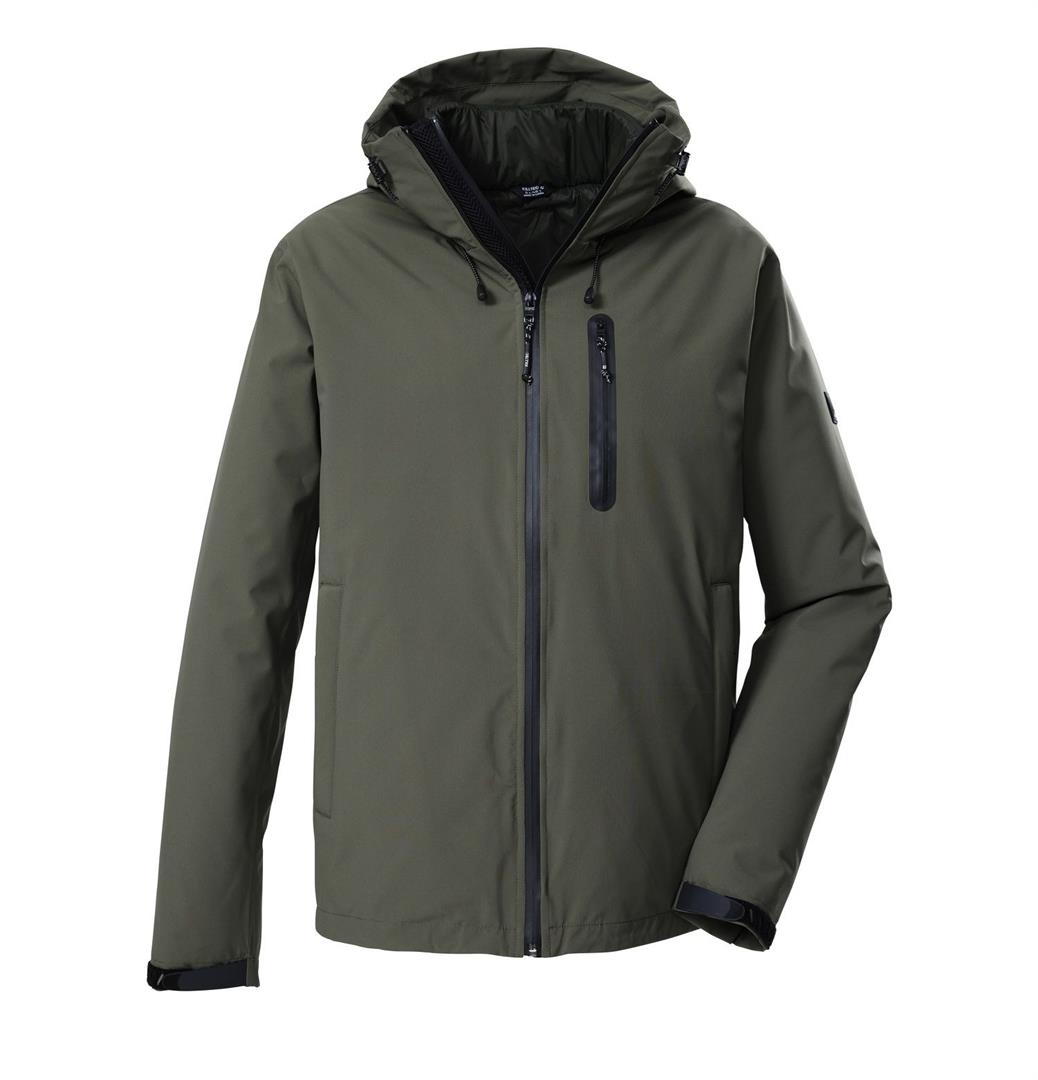 Deze veelzijdige 3-in-1 functionele jas voor heren met verstelbare capuchon biedt geavanceerde functies. Met een waterkolom van 10.000 mm en gelaste naden biedt hij bescherming tegen regen en wind. Het is belangrijk om de jas zo nu en dan opnieuw waterdicht te maken. Het materiaal is ook ademend (3.000 g/m²/24 h). De handzakken en binnenzak bieden voldoende ruimte voor een mobiele telefoon en andere kleine spullen. De klittenbandsluitingen aan de manchetten maken individuele aanpassing mogelijk. De rits heeft een praktische kinbescherming. Een bijzonderheid is de extra gewatteerde jas, die eenvoudig aan en uit te ritsen is, zodat u de jas kunt aanpassen aan de actuele weersomstandigheden. Deze jas heeft een PFAS-vrije waterdichte finish en is gedeeltelijk gemaakt van gerecycled materiaal.