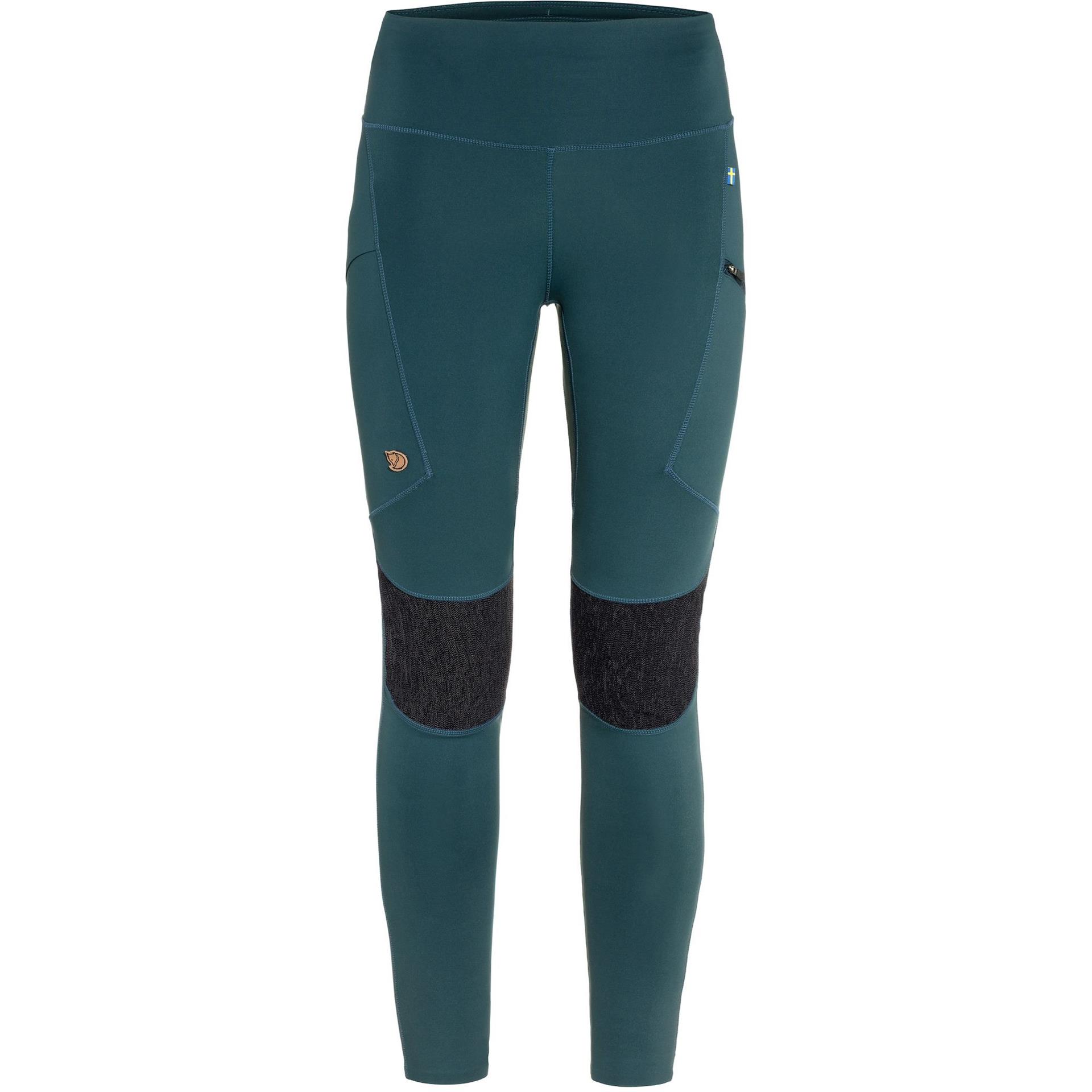 Extra slijtbestendige trekking-legging met verstevigde gedeeltes op het zitvlak en de knieën, gemaakt van duurzaam, dubbelgebreid stretchmateriaal gemaakt van gerecycled polyester met een matte, ondoorzichtige finish. Verstevigd materiaal met een waterafstotende finish biedt extra bescherming op ruw terrein – de Abisko Trekking Tights HD W is een nauwsluitende, extreem functionele en technische legging, perfect voor alle soorten trekking waarbij je volledige bewegingsvrijheid in combinatie met duurzaamheid nodig hebt. Een comfortabele, hoge tailleband met trekkoord aan de binnenkant en pijpen van volledige lengte met zomen met een laag profiel. Stevige zakken op de pijpen – één met rits en één met een klepsluiting – schuin geplaatst voor betere toegang en een flatterende pasvorm.