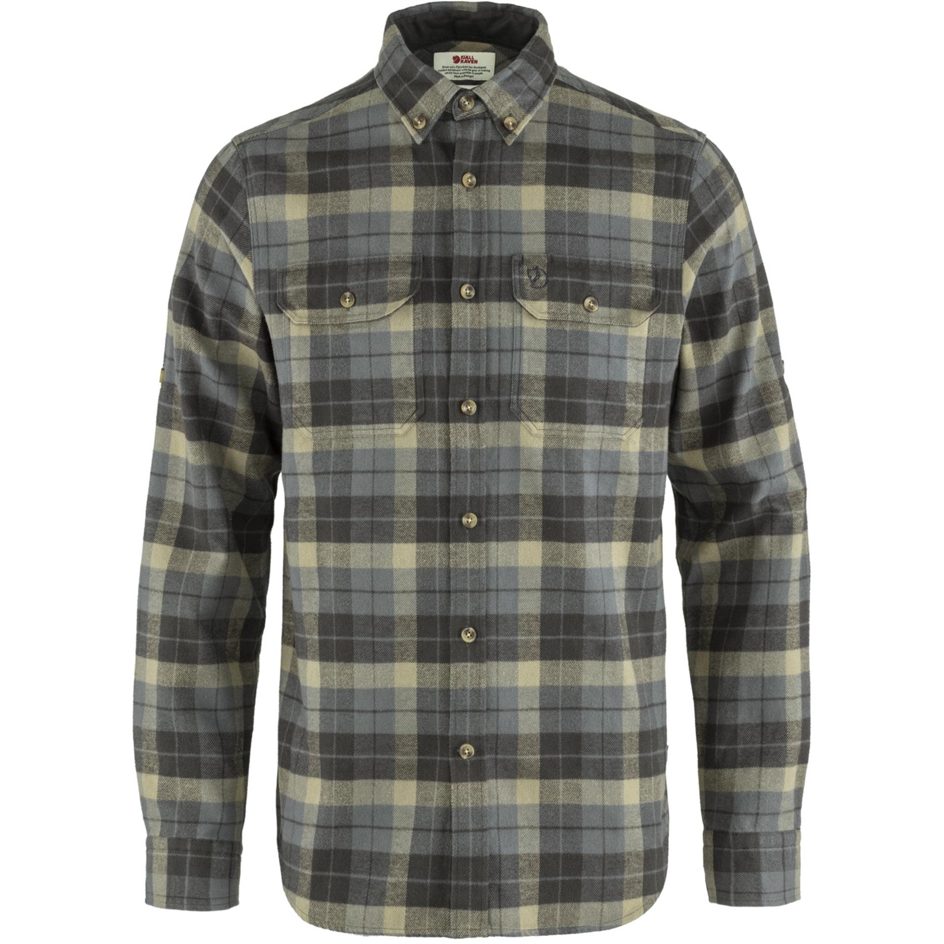 Outdoorshirt met lange mouwen, button-down kraag en normale pasvorm. Gemaakt van zacht katoenflanel met G-1000-versterkingen aan de binnenzijde van de kraag, de manchetten en de zakkleppen. Twee borstzakken met penhouders. De mouwen kunnen worden opgerold en vastgezet met een knoop.