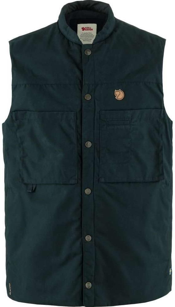 Een functioneel en slijtbestendig gevoerd vest met praktische opbergmogelijkheden voor het organiseren van je spullen voor onderweg. Twee grote plooizakken lager op de borst voor gebruiksgemak. Heeft een borstzak met rits aan de binnenkant, een zak voor meerdere spullen en twee grote steekzakken onder de isolatielaag voor warme handen in koude omstandigheden. Drukknoopsluiting aan de voorkant. De relaxte pasvorm betekent dat het eenvoudig over een trui of jas kan worden gedragen voor extra warmte.