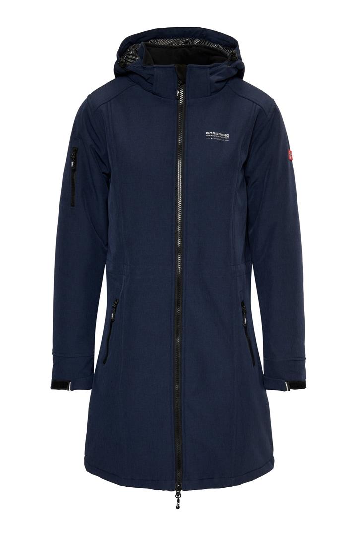 De Nordberg Gitte Ladies Softshells jas is een lange jas die perfect is voor de koudere dagen.Deze jas is gemaakt van 94% polyester en 6% elastaan (binnenvoering 100% polyester). De jas is voorzien van een opstaande kraag met doorlopende ritssluiting en een verstelbare, afneembare capuchon. Ook beschikt de jas over klittenband bij de manchetten om een verstelbare pasvorm aan de armen te verzorgen. De jas heeft aan de voorzijde twee zakken met ritssluiting, er zit aan de binnenzijde een zak met rits en aan een van de mouwen zit een zakje met rits. De jas is daarnaast waterafstotend en ademend.
