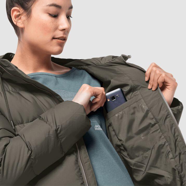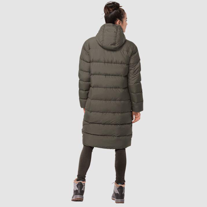 Genieten van de poolnachten in de noordelijke regionen is voor jou het summum? Met de CRYSTAL PALACE jas blijf je bij temperaturen onder nul altijd ontspannen – waar ook ter wereld.De lange donsjas is absoluut een van onze warmste styles. Dat merk je meteen als je hem aantrekt. Dat hij zo ultrawarm is, ligt aan de combinatie van een dikke vulling van gecertificeerd eendendons, winddicht STORMLOCK en het zeer lange model. Door de enigszins oversized vorm past er ook nog goed een dikke trui onder. Zo heb je het nooit meer koud.Nog warmer en knusser wordt de CRYSTAL PALACE door de capuchon met de hoge kraag. Daarmee voel je je bij wind, sneeuw en temperaturen echt ver onder nul als een ijskoningin. Een ander highlight is de aangenaam zachte grip van het buitenmateriaal.
