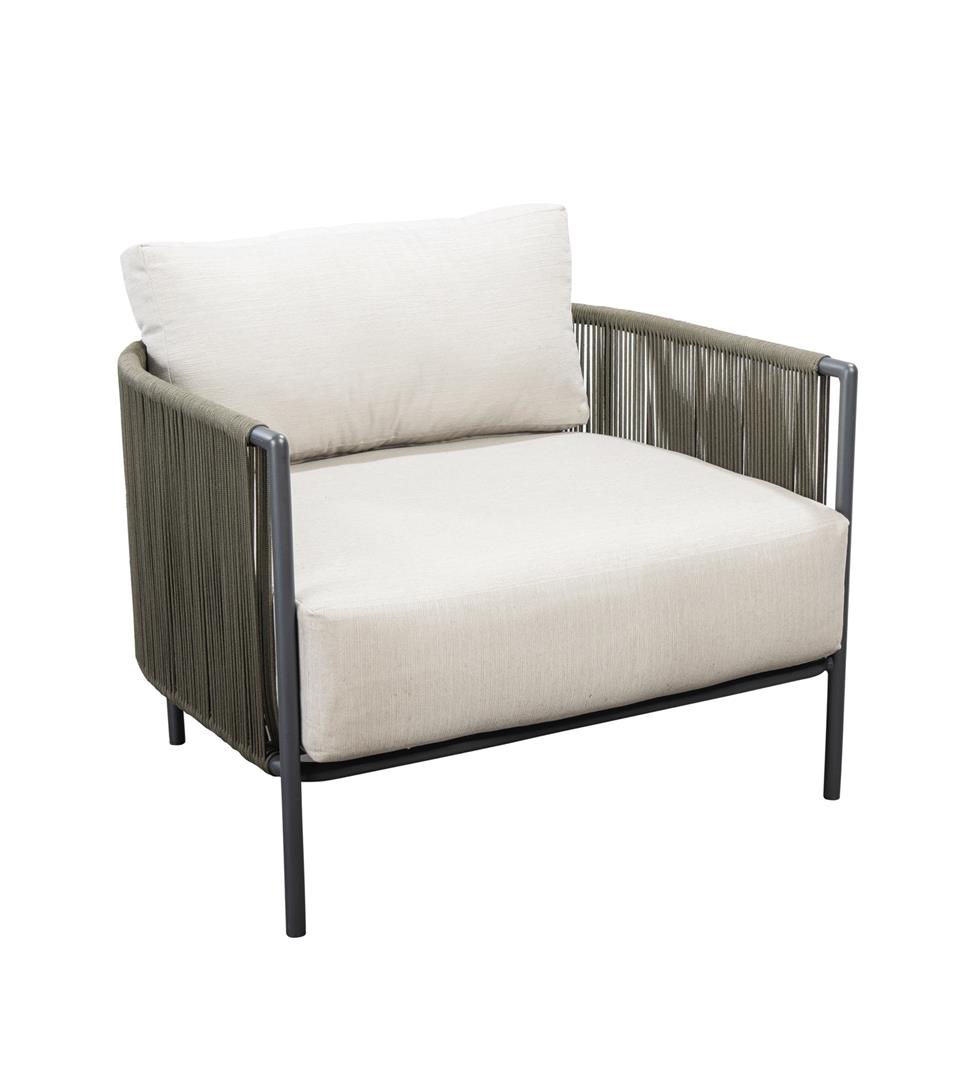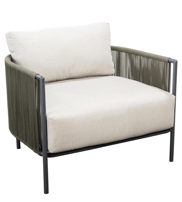 Deze tuinstoel van het merk Yoi is zeer comfortabel. Het frame van aluminium heeft een grijze coating. Deze loungestoel is zeer comfortabel door de hoge en schuine rug. Een leuke mix van materialen dat overal mee gecombineerd kan worden. Deze stoel is tevens verkrijgbaar in de kleur Rope Grey.
