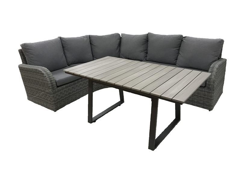 Mooie lounge/diningset met hoge tafel (150x80cm) en polywood blad.