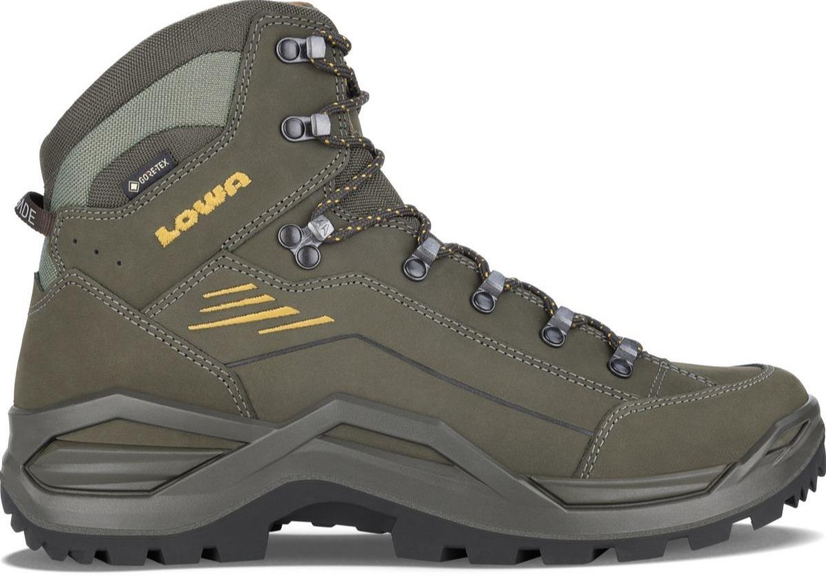 De klassieke wandelschoen van Lowa voor uiteenlopend terrein in een nieuwe uitvoering. Er is meer nog meer nadruk gelegd op comfort: de binnenkant van de voorvoet is helemaal uit één stuk gemaakt. Doordat er geen overbodige naden zijn, kan het daar gebruikte nubuckleer zich flexibel aanpassen aan de individuele vorm van de voetbotjes. Zo wordt wrijving voorkomen en wordt het gewricht van de grote teen ontzien. Ook de tweezone-vetersluiting biedt meer comfort. De opnieuw vormgegeven klemhaken maken het mogelijk om de wandelschoen nog makkelijker aan te passen aan individuele behoeften. Het waterdichte en ademende Gore-Tex® membraan zorgt voor nog meer comfort. Bovendien heeft de nieuwe Renegade een nieuw ontworpen zool. De direct aangegoten tussenzool bestaat uit twee dempende delen. Het eerste deel bestaat ut Lowa® DynaPU® en het tweede deel is een vaster deel dat samen met het Cross Over Frame voor een optimale ondersteuning zorgt. De nieuwe Vibram Rene Trac® zorgt voor een goede grip. De Gore-Tex membraan zorgt ervoor dat de voeten niet nat worden. Deze wandelschoen is breed inzetbaar: van eenvoudige bos en heide wandelingen tot eenvoudige bergwandelpaden in middengebergte.