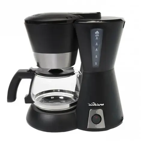 Met de Mestic koffiezetter RVS MK-650 heb je een modern en stijlvol koffieapparaat. Dit komt door het gebruik van RVS elementen in combinatie met een zwarte behuizing. De glazen koffiekan heeft een inhoud van 1,2 liter wat voldoende is voor 6 koppen koffie. De waterniveau meter geeft aan voor hoeveel koppen koffie water er in het waterreservoir zit.