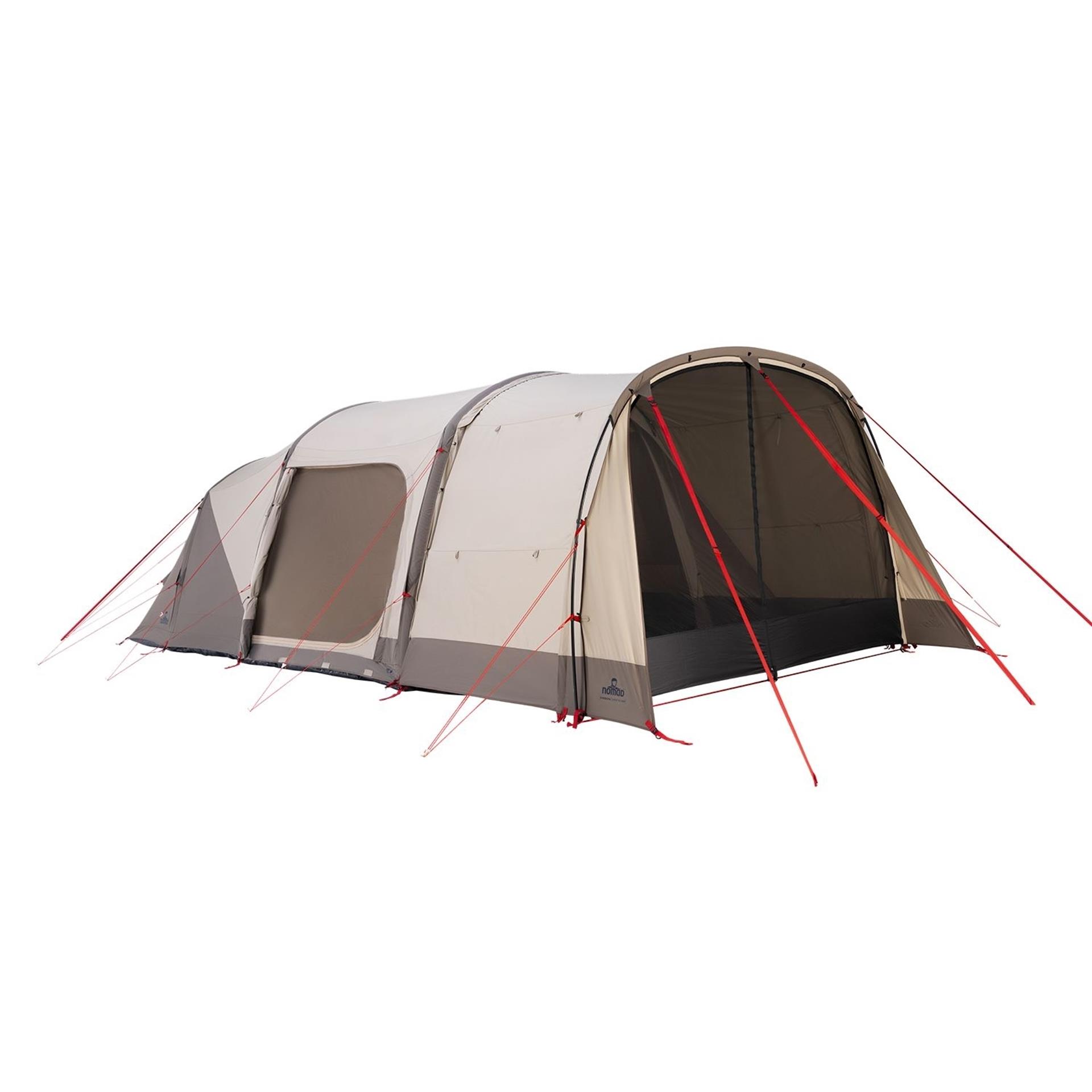 De Dogon van Nomad is een compacte familietent met een leefruimte van 2.3 meter diep. Ruim voldoende voor een tafel en stoelen, maar compact genoeg om ook op kleinere plekken en natuurcampings goed uit de voeten te kunnen. De binnenhoogte van 220 cm en de grote zijdeur, die ook volledig met muskietengaas kan worden afgesloten, zorgen voor een ruimtelijk gevoel en praktisch gebruik van het leefgedeelte. De multifunctionele voordeur over de hele breedte van de tent geeft je volop mogelijkheden om de deur naar wens gedeeltelijk of volledig open te zetten. De slimme en praktischede voorluifel zorgt altijd voor een droge inloop in de leefruimte. De vele ramen en meshpanelen zorgen voor een goede lichtinval in de tent. Natuurlijk kunnen alle vensters met gordijntjes worden afgesloten.