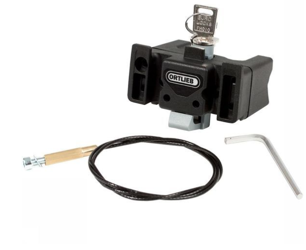 De Ortlieb Ultimate 6 Montageset is een afsluitbaar bevestigingsblok met een eenvoudige kabelbevestiging voor de Ultimate stuurtassen. Op de voorzijde is er een reflectie aangebracht en twee sleutels.