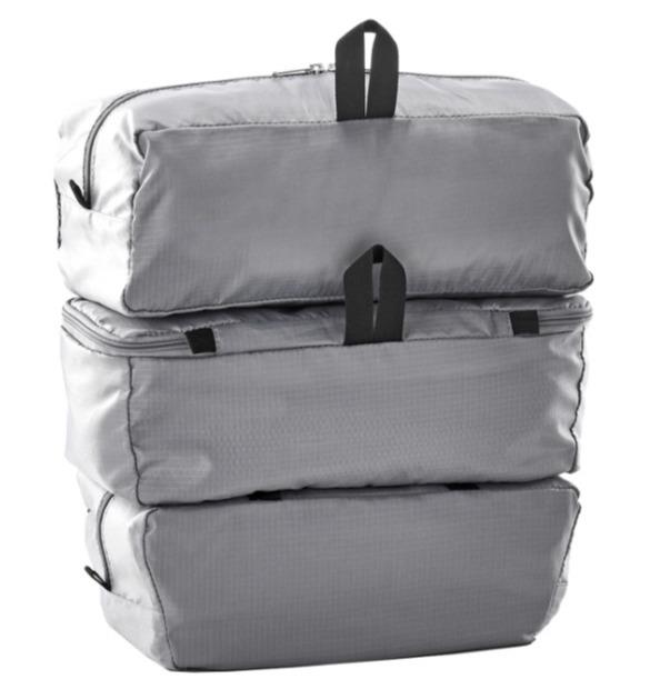 De Packing Cubes besparen je veel tijd bij het inpakken voor je fietstocht. De Cubes zijn een ideale opbergplek voor kleding, gereedschap, toiletartikelen en andere spullen. Het systeem is speciaal ontworpen voor kleine voorwerpen die vaak op de bodem van je koffers terechtkomen. De drie inzetstukken kunnen gestapeld worden in koffers. Alle Cubes zijn uitgerust met een praktische ritssluiting. Elke Cube heeft een extra binnen- en buitenvak voor het opbergen van kleine voorwerpen die u graag binnen handbereik wilt hebben.