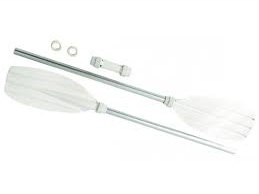 Roeispanen met een verbindingsstuk voor de kano.De kano peddel is demontabel. De totale lengte is 225 cm. De peddel bestaat uit 2 stokdelen, 1 handvat (koppelstuk), 2 ringen en 2 bladen.