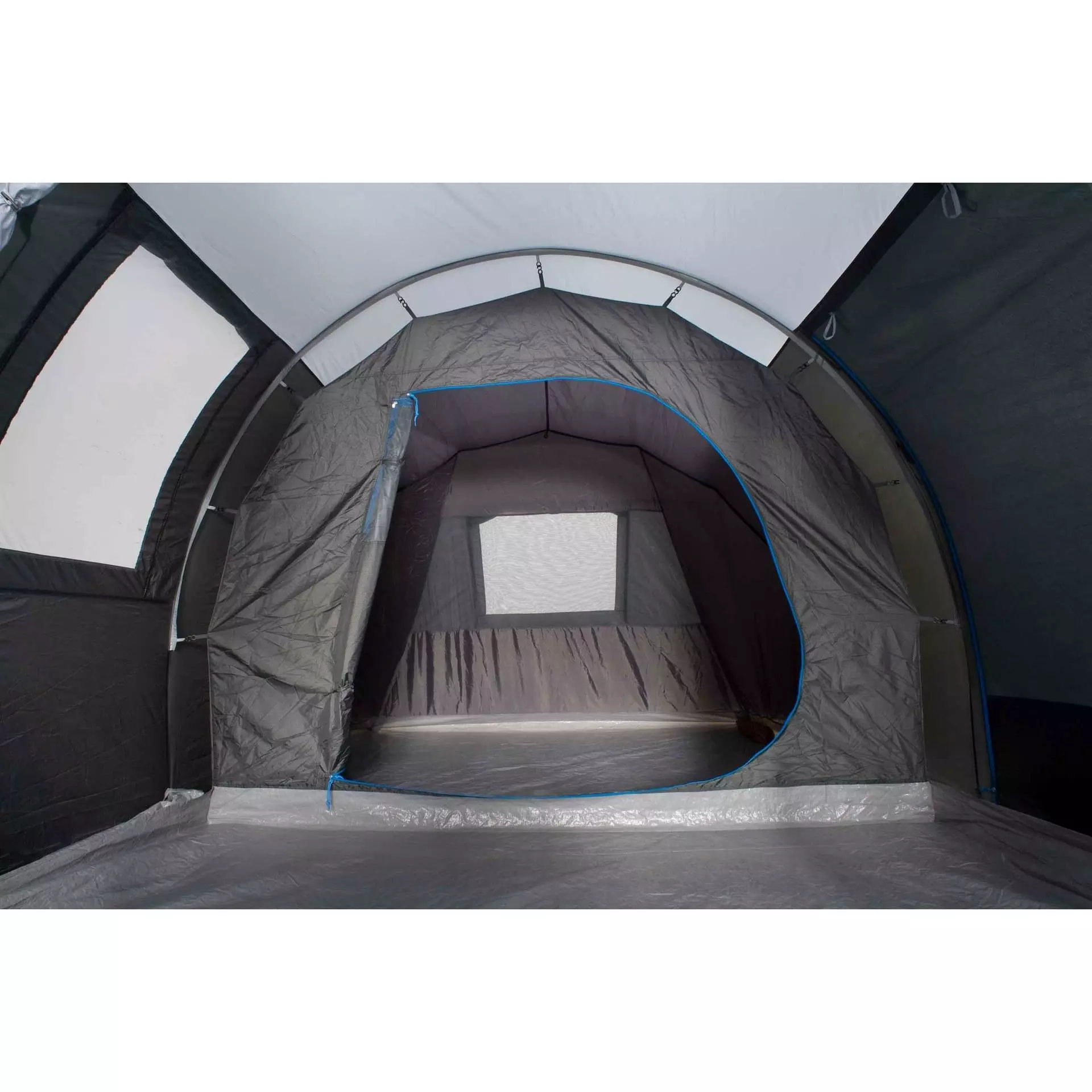 De Safarica Blackhawk 260 is makkelijk op te zetten en licht van gewicht dankzij de gebruikte materialen. U kunt de tent makkelijk opzetten dankzij het tunnelontwerp en het grondzeil is erg makkelijk vast te maken aan de buitentent met steekgespen. Deze bijzettent houdt met dit kuipgrondzeil water, vuiligheid en ongedierte altijd buiten de deur. De buitentent is gemaakt van honeycomb polyester met een waterkolom van 4000 mm. Deze waterkolom zegt eigenlijk iets over hoeveel water een doek kan verdragen voordat het water er doorheen lekt. Als een tentdoek een waterkolom van 4000 mm heeft, wil dat eigenlijk zeggen dat het doek pas water doorlaat wanneer er een druk op het doek komt te staan die vergelijkbaar is met het gewicht van een kolom water van vier meter hoogte. Aangezien de buitentent van polyester is, weegt deze niet zo veel en droogt het doek ook snel weer op. Een nadeel van polyester is dat het minder ademend is, dus is goede ventilatie een must. Deze tent is daar natuurlijk op voorzien en biedt voldoende ventilatiemogelijkheden. Zo heeft de zij-ingang een afsluitbare gaasdeur en is de deur van het slaapgedeelte voorzien van een brede horrengaasstrook. De ruimte tussen de binnen- en buitentent draagt bij aan de goede luchtcirculatie en zal het uiteindelijk minder klam maken in de tunneltent. Deze tent wordt compleet geleverd inclusief draagtas, haringen en scheerlijnen om het u makkelijker te maken. De Safarica Blackhawk 260 is dus praktisch en ziet er leuk uit voor op de camping!