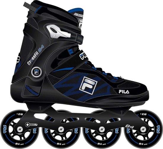 Deze Fila Crossfit 84 semi-softboot skeelers laten je soepel over de weg rollen en bezorgen jou een hele hoop aangename kilometers! De Fila Crossfit 84 skate heeft een semi-softboot schoen die comfortabel zit en toch voldoende steun aan de enkel en voet biedt zonder de bewegingsvrijheid te beperken. Voorzien van een vetersluiting, hoge snelsluiting en een klittenbandstrap over de wreef voor een optimale, aansluitende pasvorm. De skeelers van Fila hebben 83A (hardheid) PU wielen. Deze medium harde wieltjes zorgen voor een perfecte combinatie van snelheid, duurzaamheid en demping. De skates beschikken over ABEC 7 kogellagers en de wielen hebben een diameter van 84 mm. Het frame is gemaakt van aluminium, de binnenzijde van de schoen is van schuimrubber en de buitenzijde van mesh voor voldoende ventilatie. De Fila Crossfit 84 skeelers hebben merkopdrukken op het bovenwerk en sportieve, blauwe accenten.