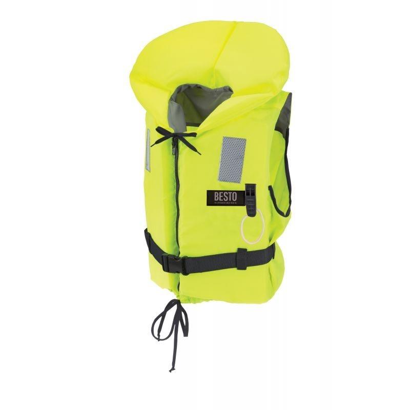 Het zeer comfortabele Besto Racingbelt Special reddingvest is aan de voorzijde uit verschillende delen gemaakt, om zo het draagcomfort aanzienlijk te vergroten. Daardoor is dit vest ook bijzonder geschikt voor dames. Daarnaast is het Besto racingbelt special vest gemaakt uit airex foam. Dit is het meest lichte en comfortabele schuim dat er op dit moment op de markt te verkrijgen is. Het reddingsvest is voorzien van een boven-, taille- en ondersluiting om het vest goed op uw lichaam aan te laten sluiten. Dit verhoogt het draagcomfort en de veiligheid. Alle maten zijn voorzien van Fluor geel High Visibility buitenstof, signaalfluit en applicaties van reflecterend materiaal voor snelle herkenning en redding in geval van nood.