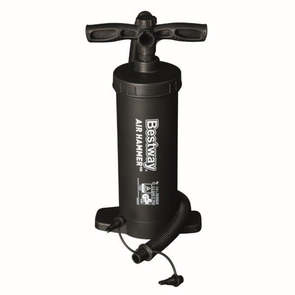 Pomp je luchtbed, boot of zwembad lekker snel op met deze dubbelwerkende pomp. De pomp pompt bij de neerwaartse en opwaartse beweging.