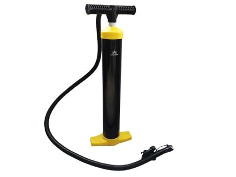 De Double Action Luchtbedpomp staat stevig op de grond wat zorgt voor stabiliteit en de hendel biedt een goede grip zodat er de nodige kracht kan worden gezet. De werkingsdruk van de pomp komt neer op 0,3 bar. De pomp wordt geleverd met verschillende koppelstukken.