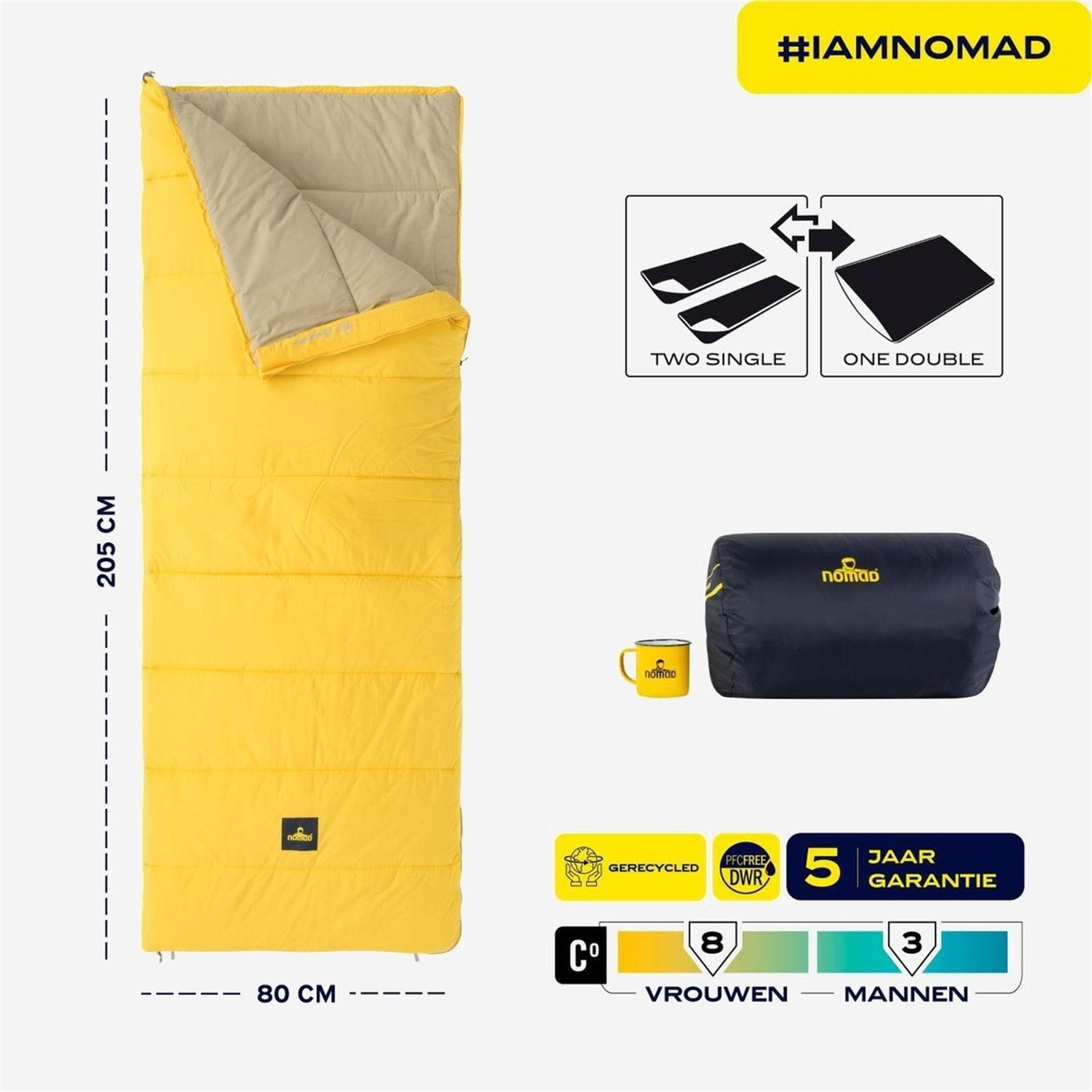 Of je nu gaat kamperen of logeren, met de NOMAD® Blazer Slaapzak ervaar je het comfort van je eigen bed. Gemaakt van hoogwaardig 100% biologisch percal katoen en gevuld met warme, gerecycleerde materialen, houdt deze slaapzak je lekker warm bij temperaturen tot 8 °C. De zachte stof en de milieuvriendelijke materialen maken het de ideale keuze voor al je buitenavonturen.