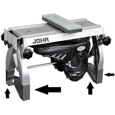 Om de Joha Pro optimaal te gebruiken is er een speciaal”statief” ontwikkeld. Hierdoor wordt het blok 8 cm hoger. Het statief wordt onder de staanders van het Joha Pro blok bevestigd. Dankzij het statief kunnen ook Comfort Noren nauwkeurig worden geslepen.