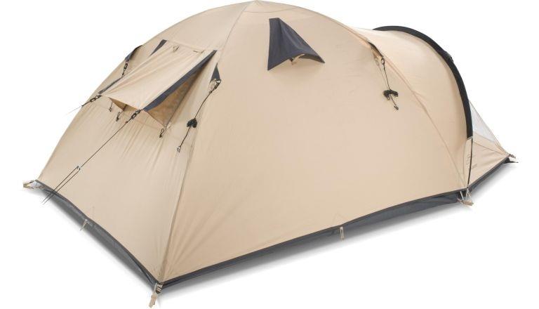 De donkere slaapcabine bevordert een betere nachtrust door extra duisternis te bieden, wat het slaapcomfort verhoogt. De tent is gemaakt van stevig ripstop technisch katoen, dat niet alleen waterdicht is, maar ook goed bestand is tegen UV-straling, waardoor de tent lang meegaat en uitstekend presteert onder verschillende weersomstandigheden. Dankzij de ruime hoogte heeft u voldoende bewegingsvrijheid, waardoor het verblijf in de tent aangenaam en comfortabel is.
