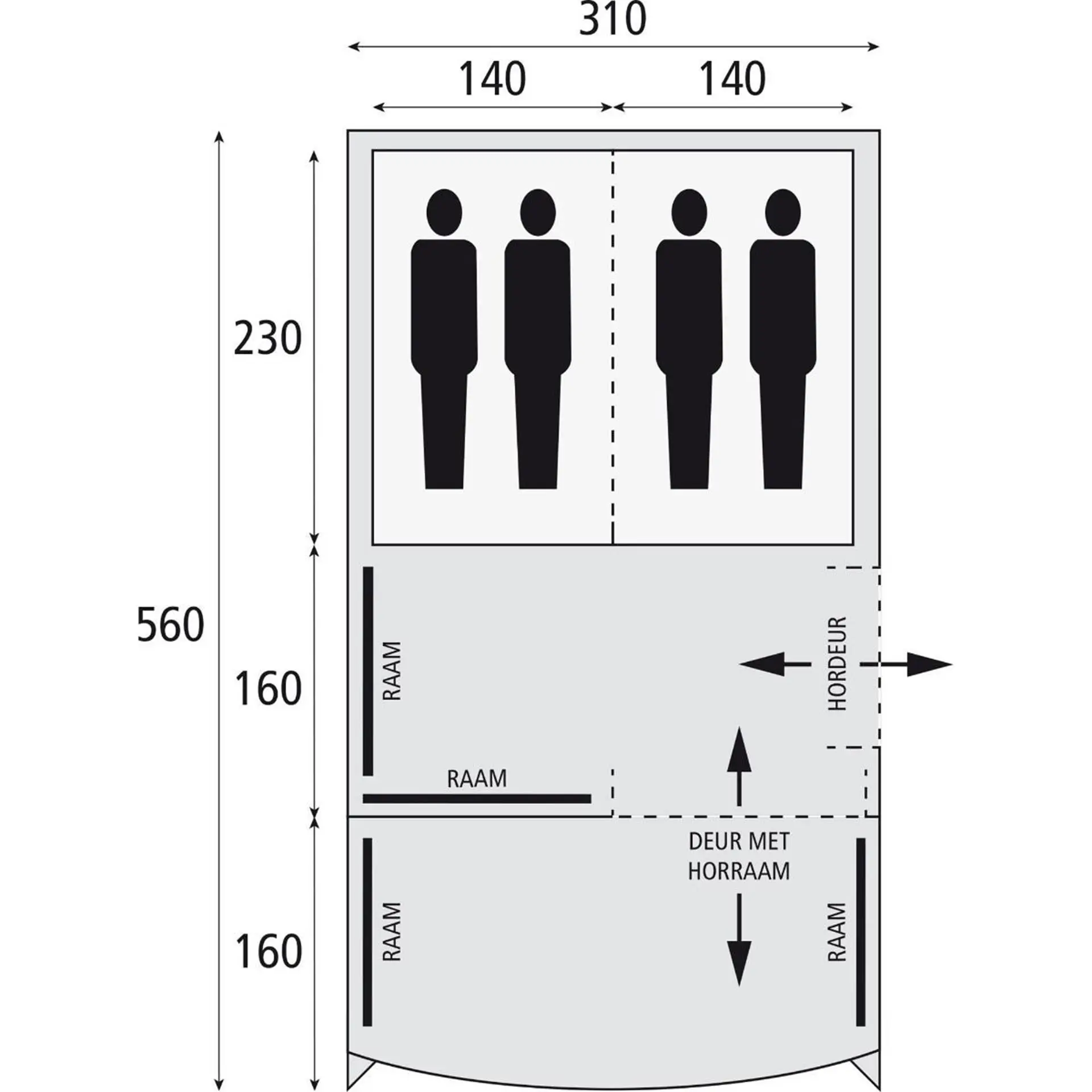 De Safarica Indian Hills 310 Air is een luxe opblaasbare kampeertent voor 3 tot 4 personen. Deze tunneltent van polyester heeft een waterkolom van 4000 mm en is erg eenvoudig op te zetten. U zet deze simpelweg op met een drietal oppompbare luchtslangen en een glasfiber stok om de vaste luifel te ondersteunen. Deze tent heeft een mooie lichtinval dankzij de grote ramen en is te betreden via een voor- en zijingang. De tent is voorzien van een innovatief Airframe met 10 cm dikke TPU luchtslangen met geknikte hoeken om een rechte wand te creëren. Zo kunt u alles uit de ruimte halen! Daarnaast geniet u in de hele tent van een comfortabele stahoogte. Deze leefruimte heeft een vastgestikt kuipgrondzeil met neerklapbare randen aan de voorzijde voor een drempelloze toegang. De grote, donkere binnentent is eenvoudig te bevestigen en is tevens voorzien van een scheidingswand. Deze scheidingswand kunt u, net als de voorwand van het leefgedeelte, eenvoudig weghalen om de ruimte te vergroten. De gehele tent heeft goede ventilatiemogelijkheden en dient rondom afgespannen te worden met meegeleverde scheerlijnen en haringen. Daarnaast wordt de tent ook geleverd met een pomp en een handige draagtas. Met de Safarica Indian Hills 310 Air kunt u het lekker luchtig houden als u gaat kamperen met uw gezin!