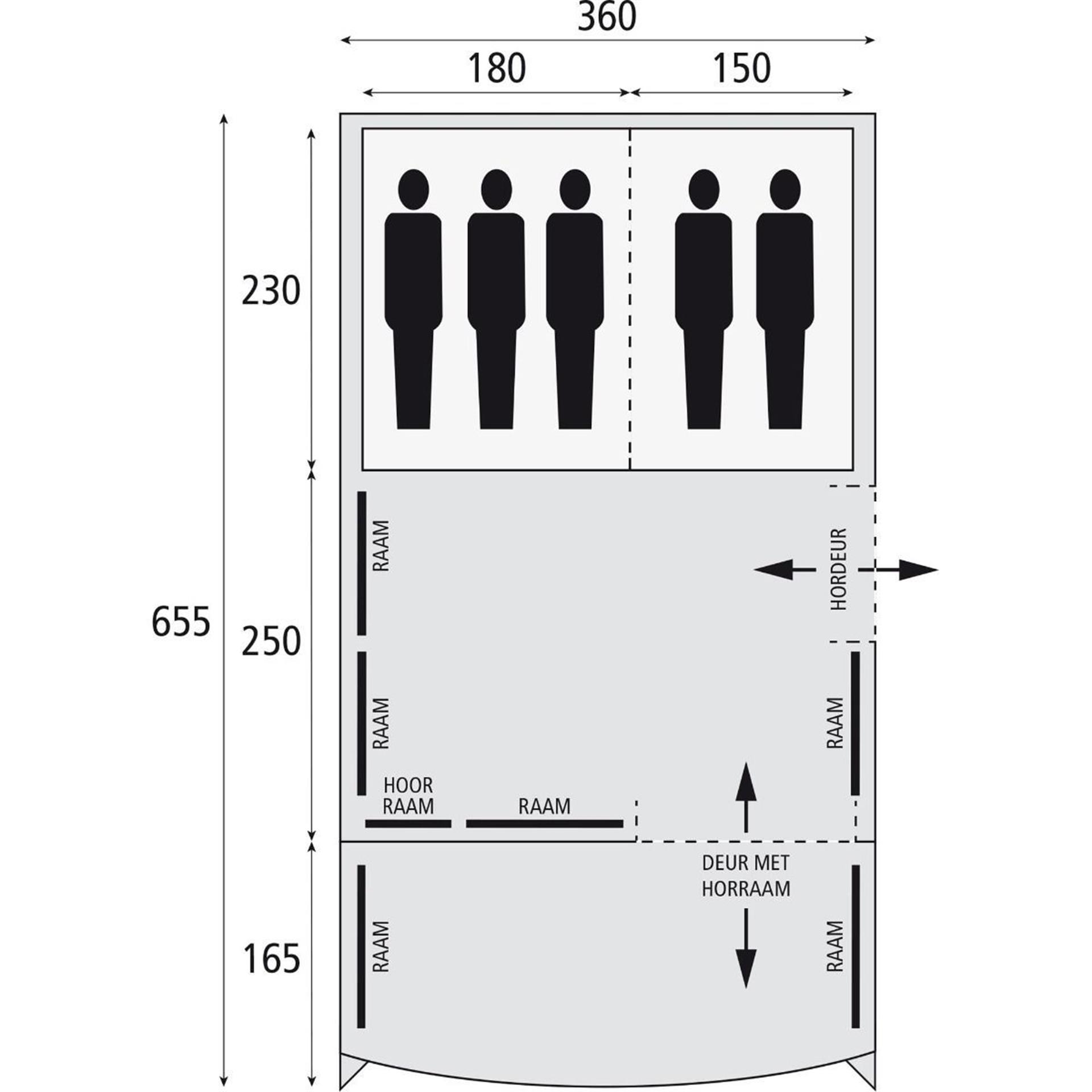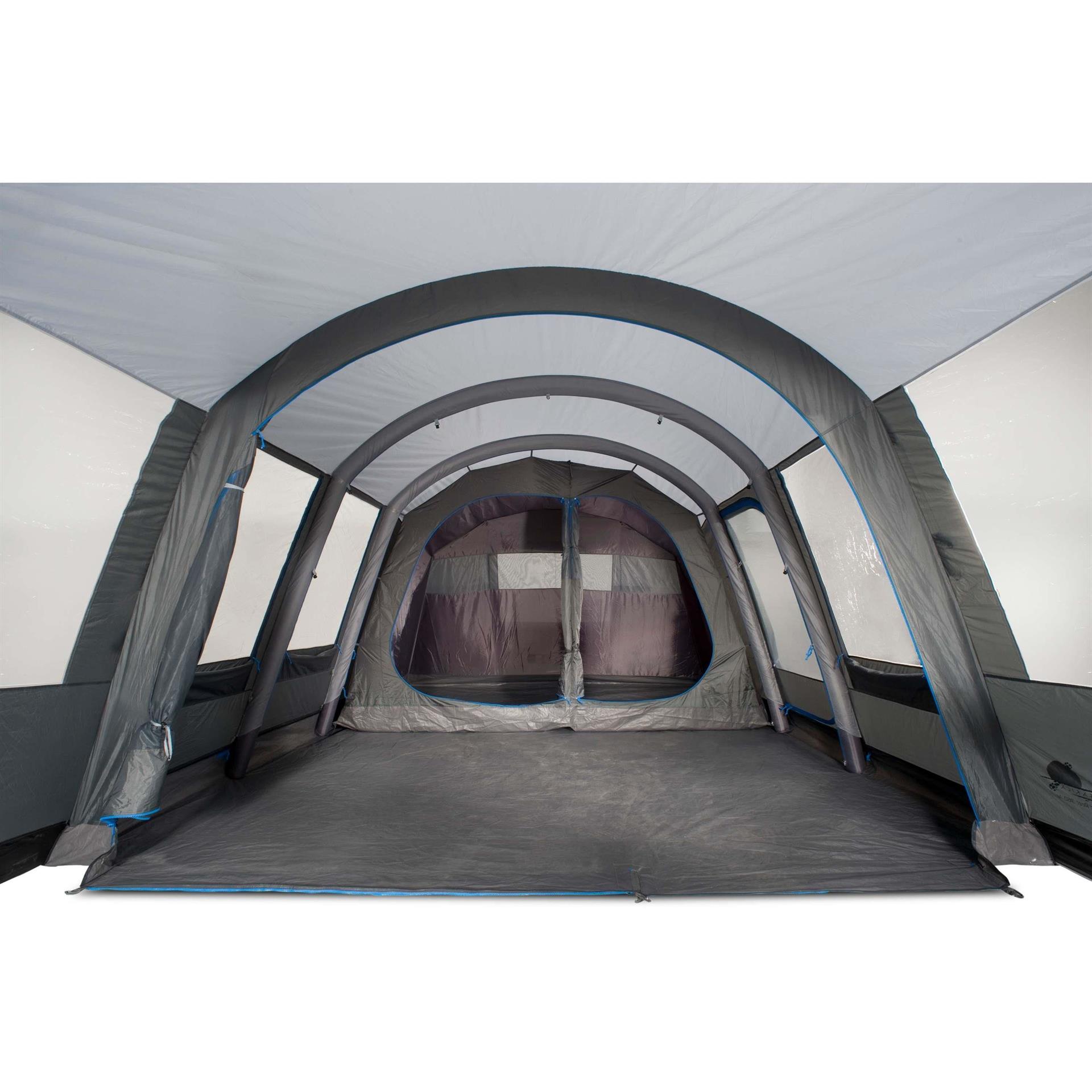 De Safarica Indian Hills 360 Air is een zeer luxe opblaasbare gezinstent om met 5 personen heerlijk in te gaan kamperen. Deze tunneltent is gemaakt van polyester met een waterkolom van 4000 mm. Daarnaast is deze super snel opzetbaar met 4 oppompbare luchtslangen en is deze voorzien van een diepe luifel met grote raampartijen. De voorgevormde luchtslangen hebben een doorsnede van 10 cm en zijn voorgevormd in de hoeken zodat de tent rechte wanden heeft. Hierdoor kunt u de leefruimte echt optimaal benutten! Dankzij de comfortabele stahoogte in de hele tent heeft u voldoende bewegingsvrijheid. Daarnaast kunt u de wand van de voorbouw en de scheidingswand van tussen de slaapcabines weghalen zodat u de tent flexibel in kunt delen. Zo kunt u deze tent altijd aanpassen aan uw kampeeravontuur. Het ruime leefgedeelte heeft een voordeur met een neerklapbaar grondzeil en is ook te bereiken via een zij-ingang (met horrengaasdeur). Zo heeft u ook als het weer u in de steek laat voldoende ruimte om te relaxen met uw gezin. De Safarica Indian Hills 360 Air is een fijne kampeertent voor het hele gezin!