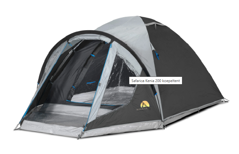 De Kenia 200 koepeltent van Safarica is geschikt voor drie personen. De slaapcabine is 220 centimeter lang en 190 centimeter breed. In het midden is de tent 125 centimeter hoog en aan de voorkant 110 centimeter. Om hem makkelijk mee te kunnen nemen wordt er een draagtas meegeleverd. Ook is de tent inclusief haringen en scheerlijnen.