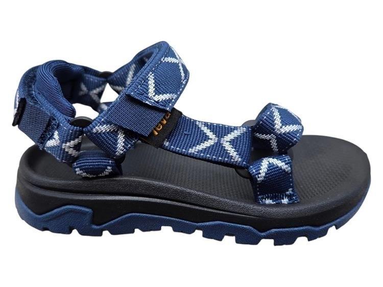 Soepele en waterbestendige sandaal model Hurricane XLT JR van het merk Teva met een 3 voudige klittenband sluiting in de kleur blauw met print . Kleurcode DDN.