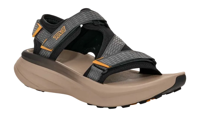Deze hoogwaardige sandaal van Teva is ontworpen voor heren die comfort en functionaliteit zoeken tijdens sportieve activiteiten. Dankzij het ademende neopreen mesh onder de bandjes blijft de voet fris en droog, zelfs bij intensief gebruik. De innovatieve HYPER-COMF-middenzool biedt optimale demping, terwijl de stevige Spider Rubber-buitenzool met 3,5 mm noppen zorgt voor uitstekende grip op diverse ondergronden. De W-sluiting geeft extra ondersteuning en stabiliteit, ideaal voor hardlopen of lichte trailruns. Met het moderne design in de kleur Black Sunflower en het gebruik van duurzame materialen is deze sandaal de perfecte keuze voor avontuurlijke mannen.