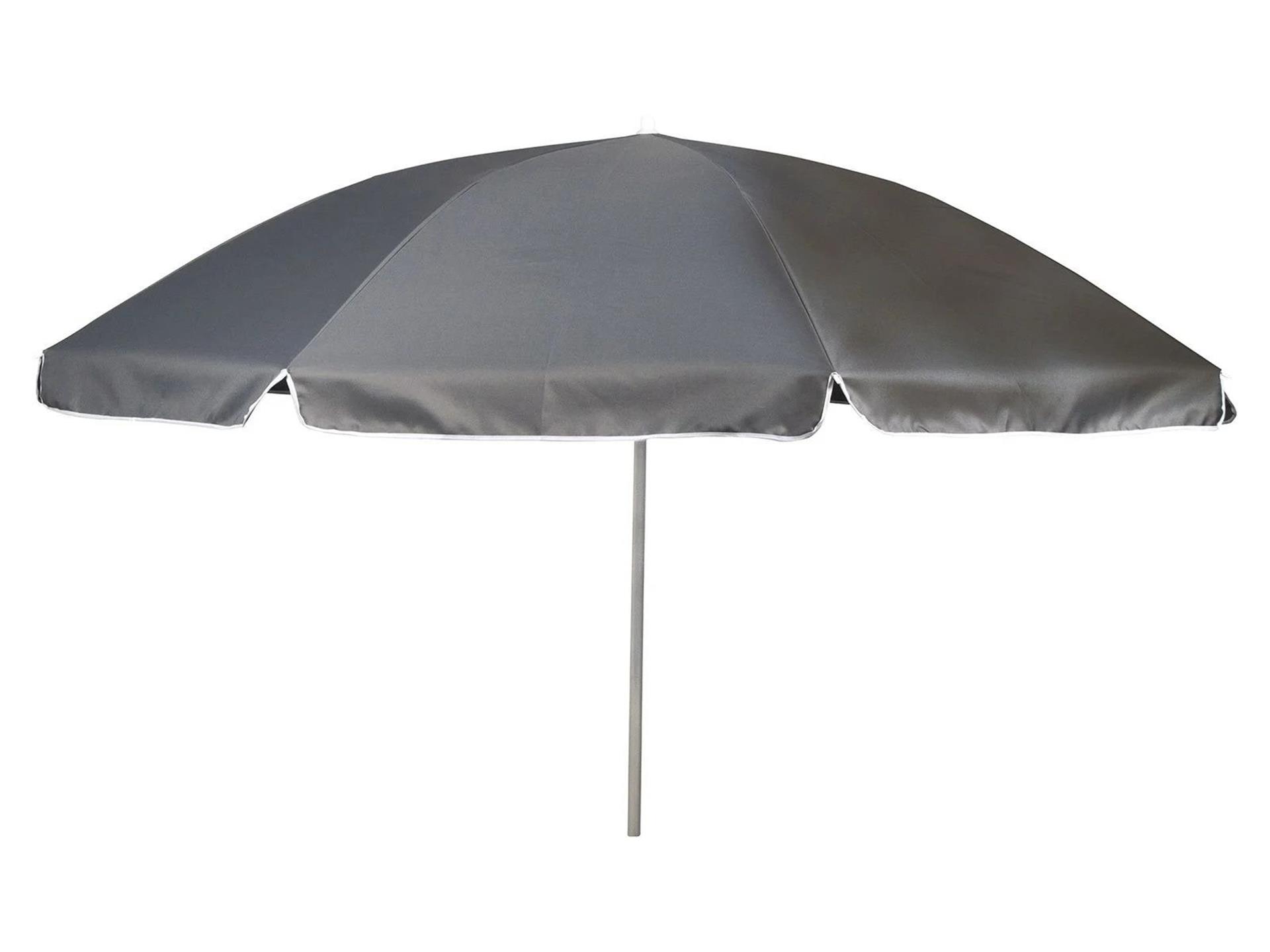 Een stevige parasol met stalen frame. Het 160 gr/m² polyester doek biedt bescherming tegen schadelijke zonnestraling. De steel is in hoogte verstelbaar en voorzien van een knikarm zodat het doek richting de zon kan worden gebogen. De steel van de parasol heeft een diameter van 25 millimeter.