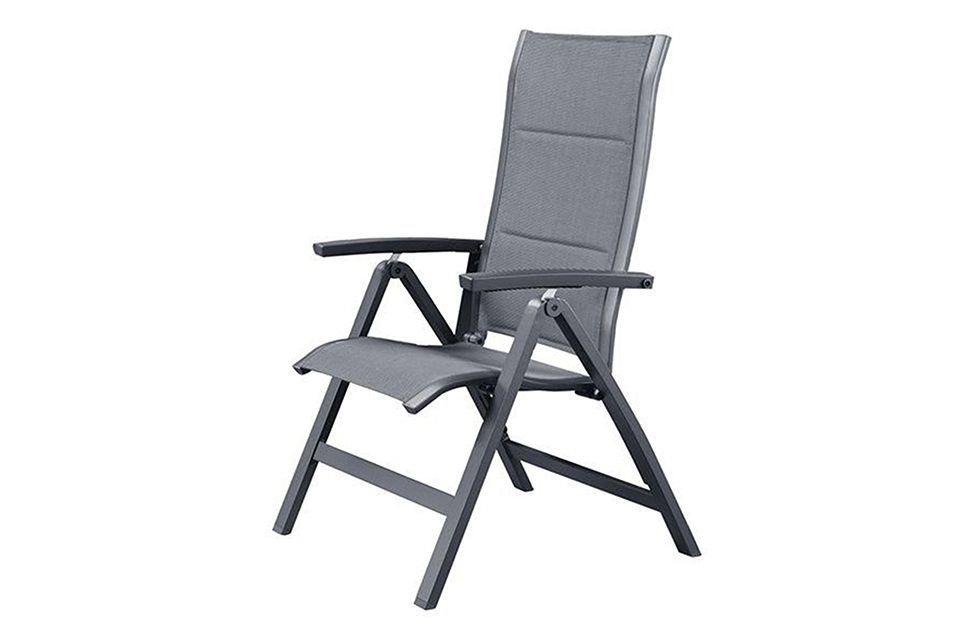 Deze tuinstoel is extra breed en comfortabel door de gevoerde rugleuning