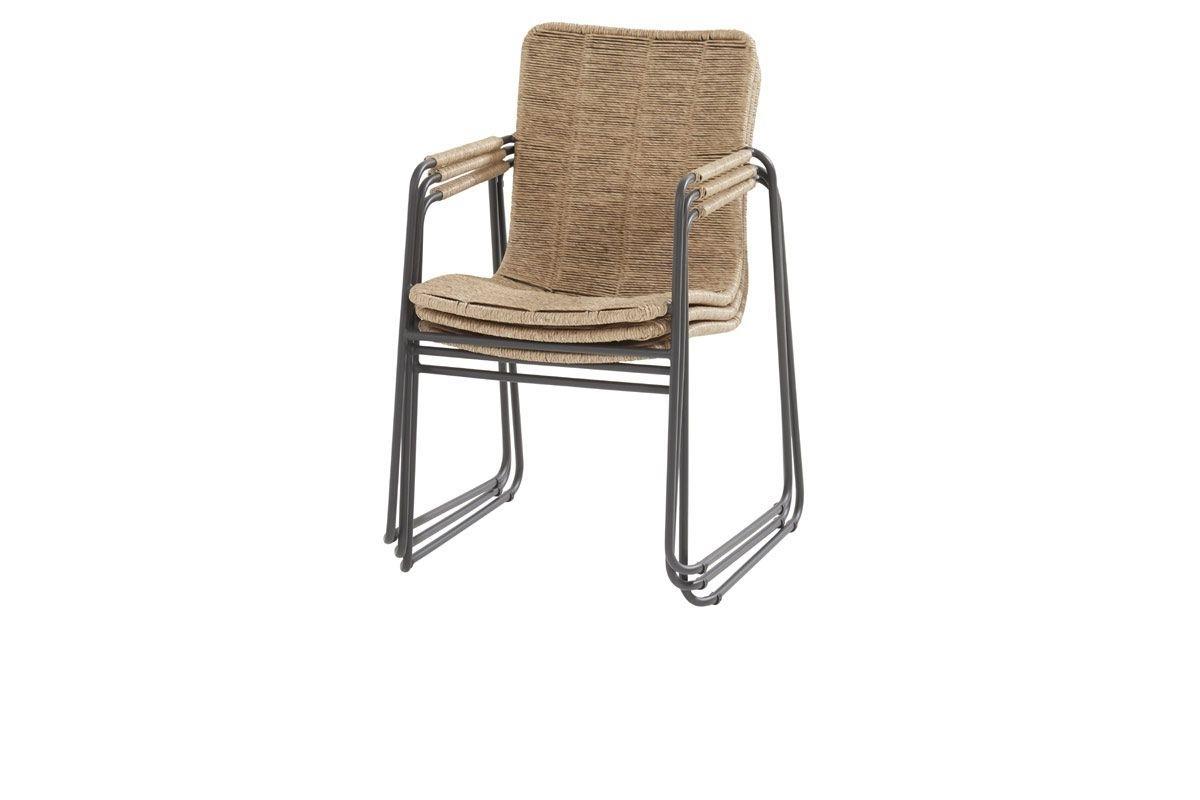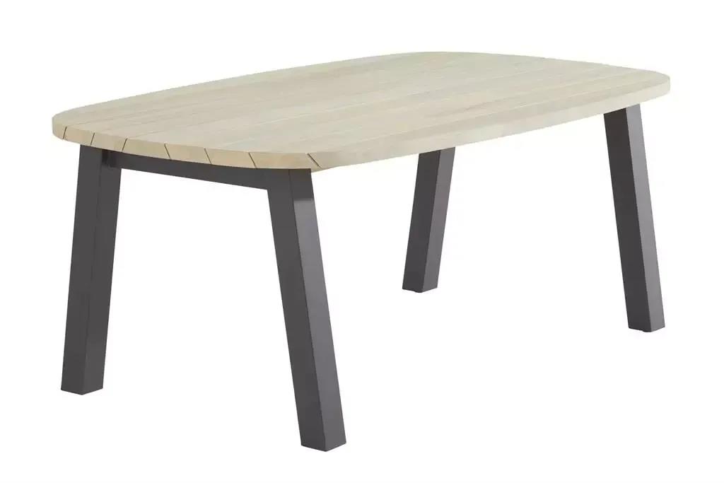 Tafel Derby 180 cm theak met 4 stapelstoelen Palma naturel