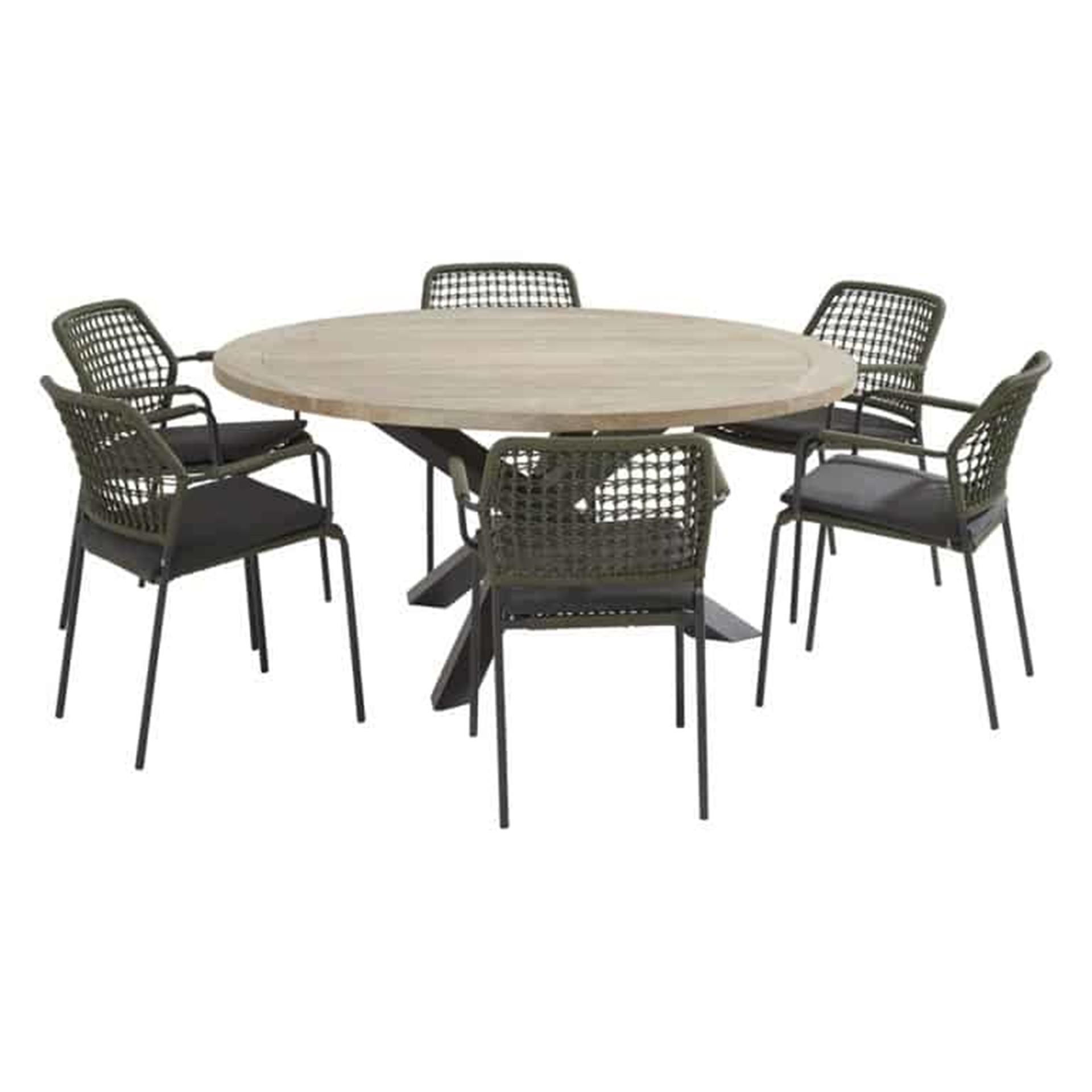 De Barista dining gecombineerd met de ronde Louvre tafel uit de collectie van Taste 4SO is een lust voor het oog! De verfijnde knoop techniek van het rope van de Barista stapelstoel, gecombineerd met de industriële looks van de Louvre tuintafel is een zeer geslaagde combinatie. De Barista is verkrijbaar in drie kleuren: antraciet, blauw en groen. Kies uw favoriete kleur, maar combineren kan natuurlijk ook. De Louvre teak tafel 160 Ø cm biedt ruimte voor 6 stoelen, waardoor u gezellig samen kunt genieten van het buitenleven. Een leuke toevoeging voor de Louvre tafel 160 Ø cm is de lazy susan, een draaiplateau voor een hapje en drankje of eventueel leuke decoratie op te plaatsen.
