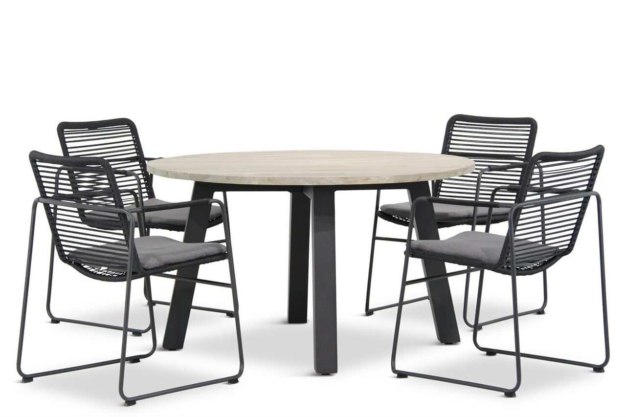 De 4 Seasons Outdoor Elba/Derby rond 130 cm dining tuinset 5-delig stapelbaar bestaat uit: