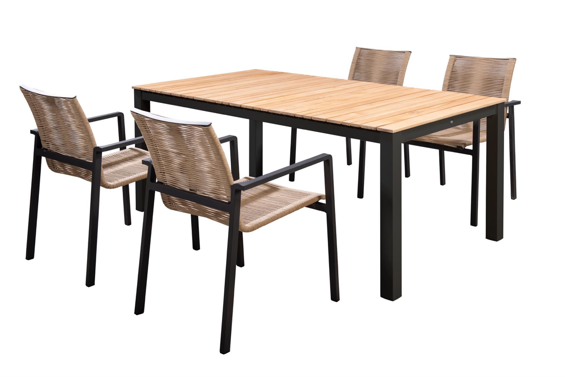 Deze prachtige diningset van het tuinmeubelmerk Yoi is een lust voor het oog. Een tuinset waarbij verschillende materialen worden gecombineerd. Strak, modern maar met een natuurlijke touch van teakhout.