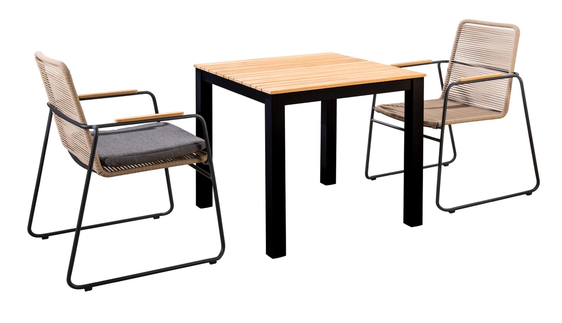 Deze prachtige diningset van het tuinmeubelmerk Yoi is een lust voor het oog. Een tuinset waarbij verschillende materialen worden gecombineerd. Strak, modern maar met een natuurlijke touch van teakhout.