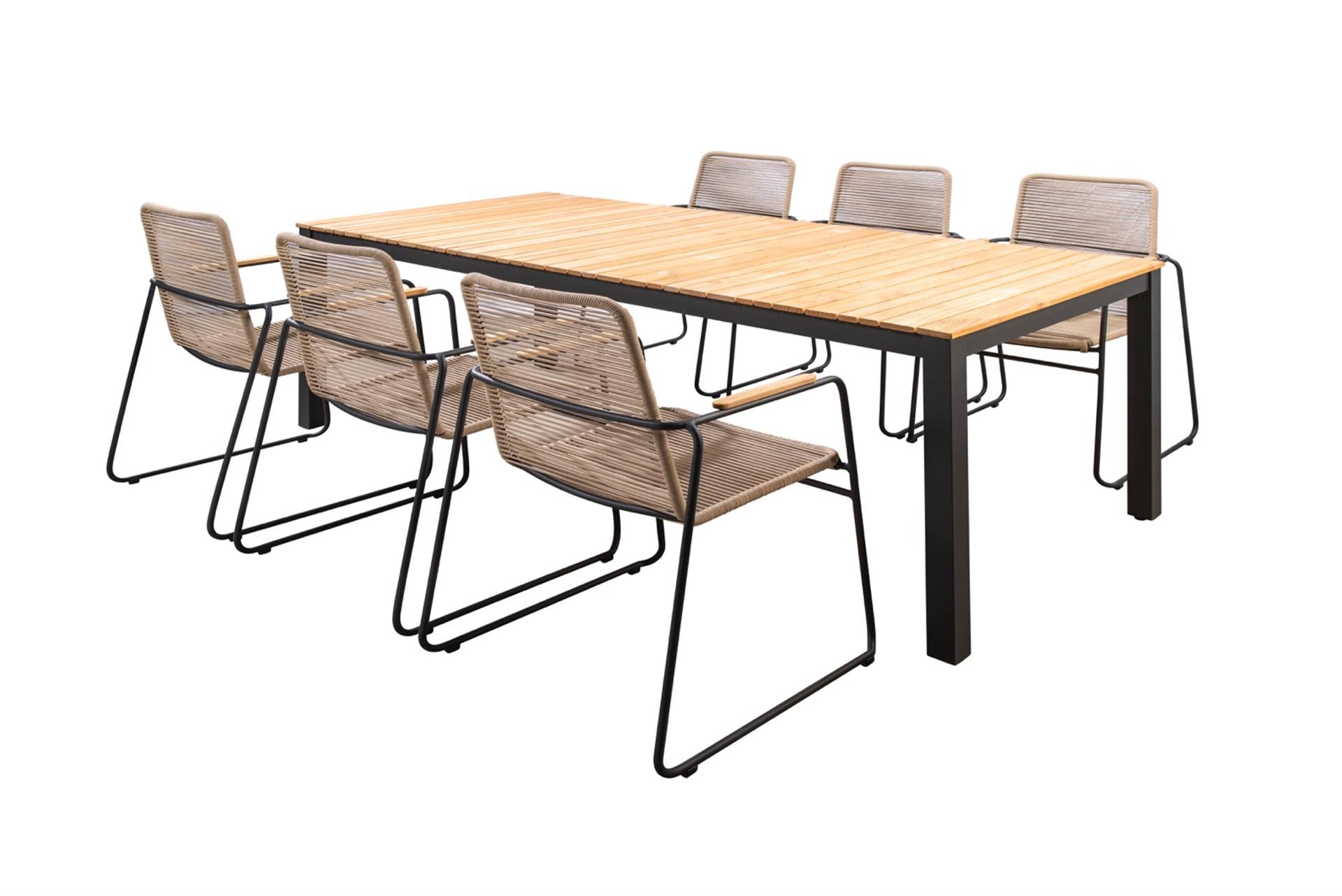 Deze prachtige diningset van het tuinmeubelmerk Yoi is een lust voor het oog. Een tuinset waarbij verschillende materialen worden gecombineerd. Strak, modern maar met een natuurlijke touch van teakhout.