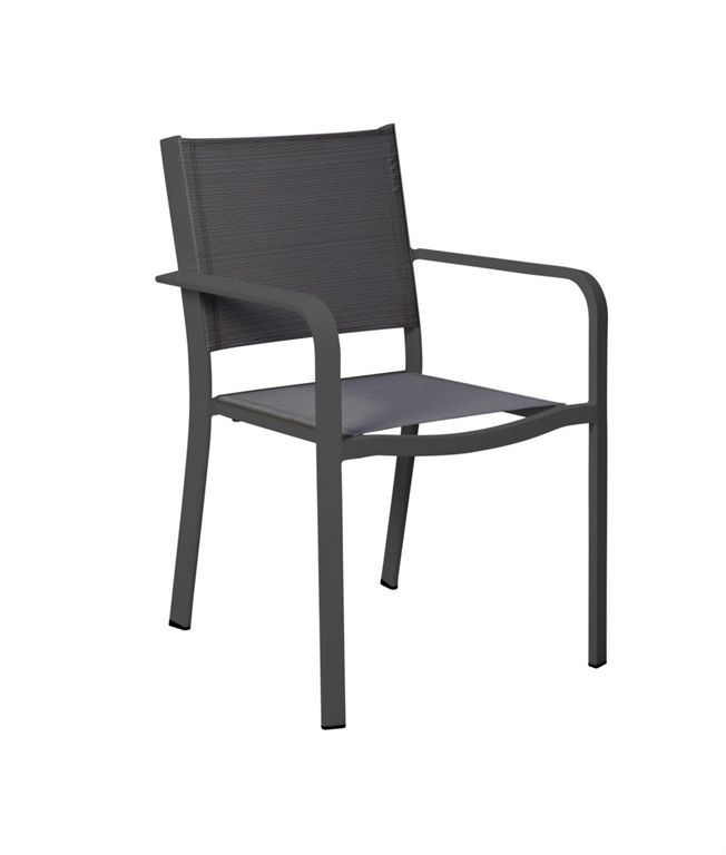 Volledig uitgevoerd in aluminium met textylenen zitting en rug.