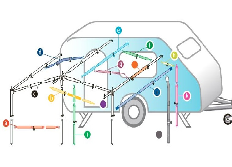 De gebogen daksteun wordt veel gebruikt onder een luifel met een frame. Door de bocht in de buis, blijft er minder snel water op de luifel staan, die dan een zak kan veroorzaken.